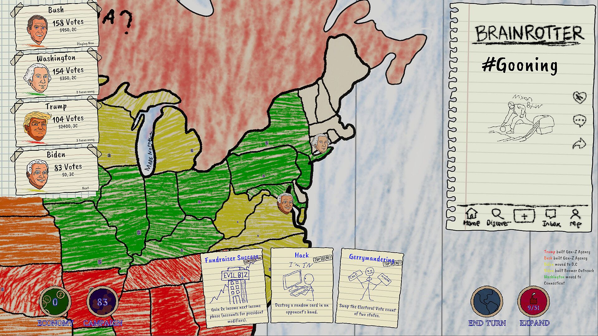 THE ROSTER: Washington, Clinton, Bush, Obama, Trump, Biden. Each candidate comes equipped with a unique special ability designed to break the rules and crush your opponents.
