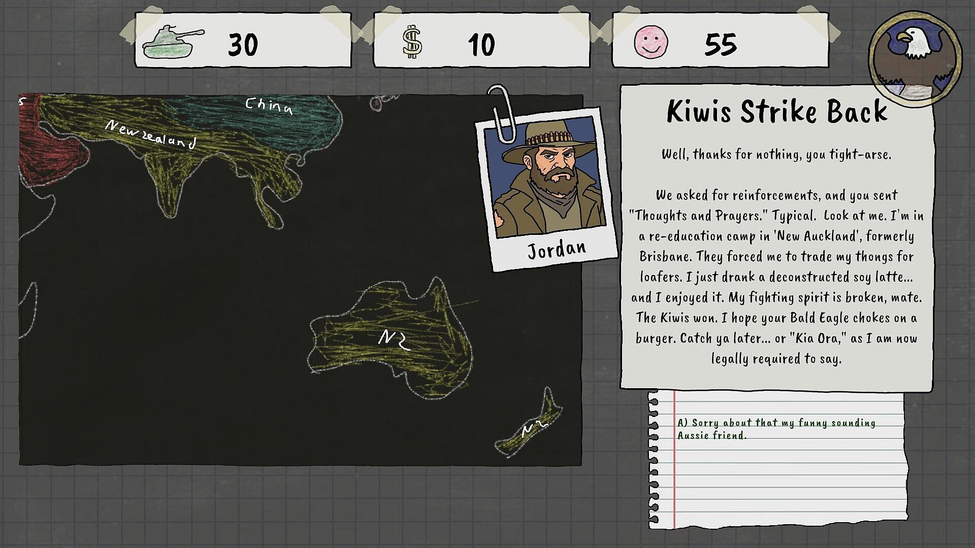 A WORLD GONE MAD: Help an Australian rebel liberate New Zealand, or assist an Englishman LARPing as Genghis Khan in conquering the steppes.