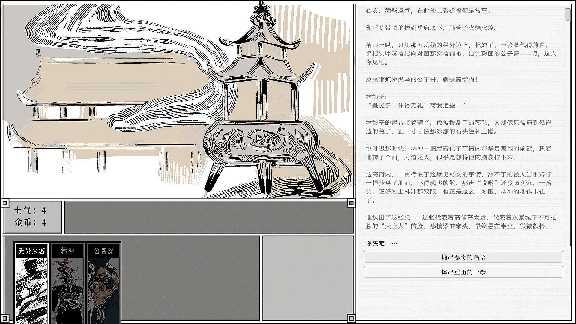 In the game, players can participate in the stories of different Liangshan heroes, such as Lin Chong, Wu Song, Lu Zhishen, and others. By befriending them and meeting certain conditions, players can form a team with these heroes.