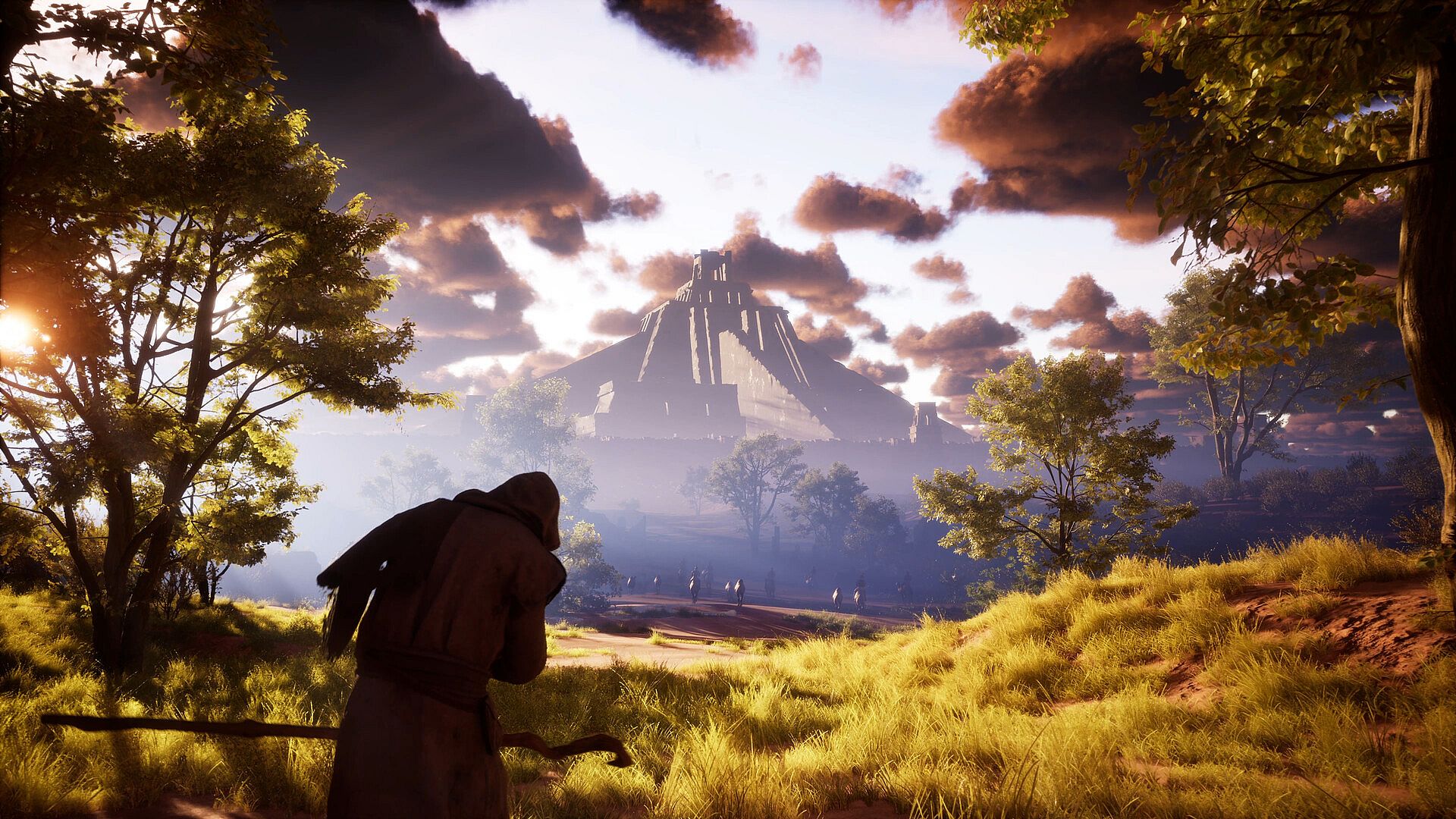 Exploration takes you across diverse regions surrounding a vast desert - settlements, wilderness paths, ruins, and monumental ancient structures. Each area presents environmental threats, enemy variations, and distinct visual identity.