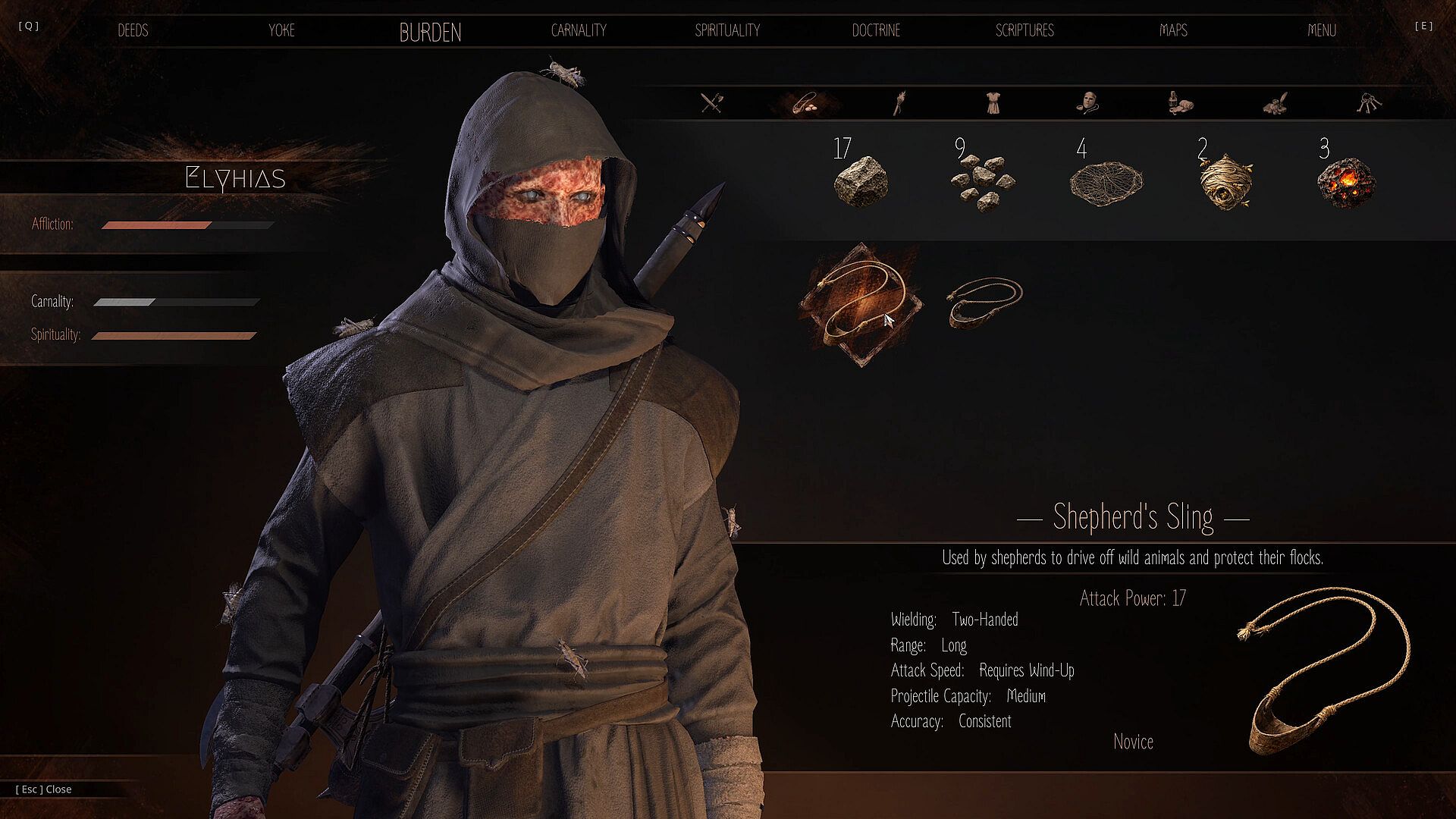 Your sling is a core tool in battle. Use it to disrupt movement, stagger large enemies, create openings, and control distance before engaging with blades at close range. Encounters require observation, preparation, and controlled execution.