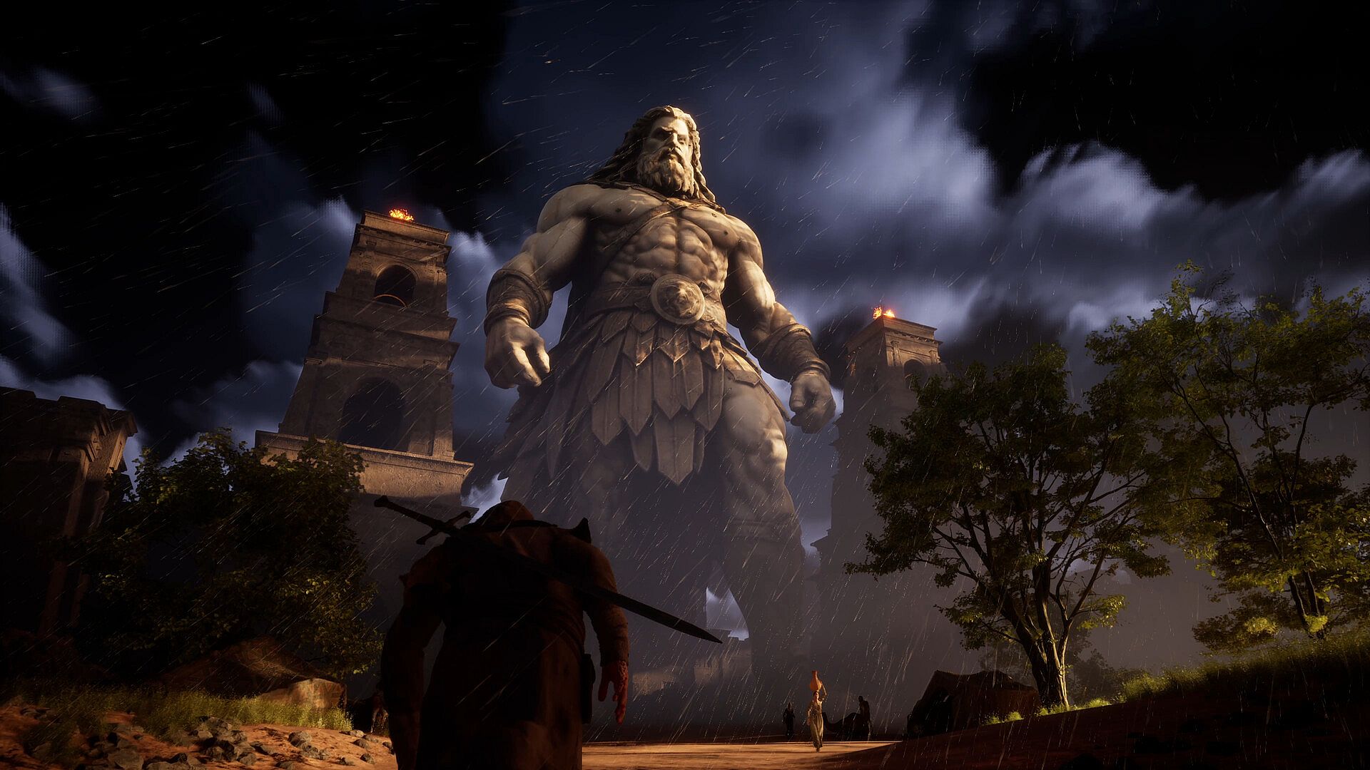 Giants do not appear randomly. You track their movement toward settlements and confront them where they pose danger, turning encounters into purposeful hunts rather than scripted boss fights.