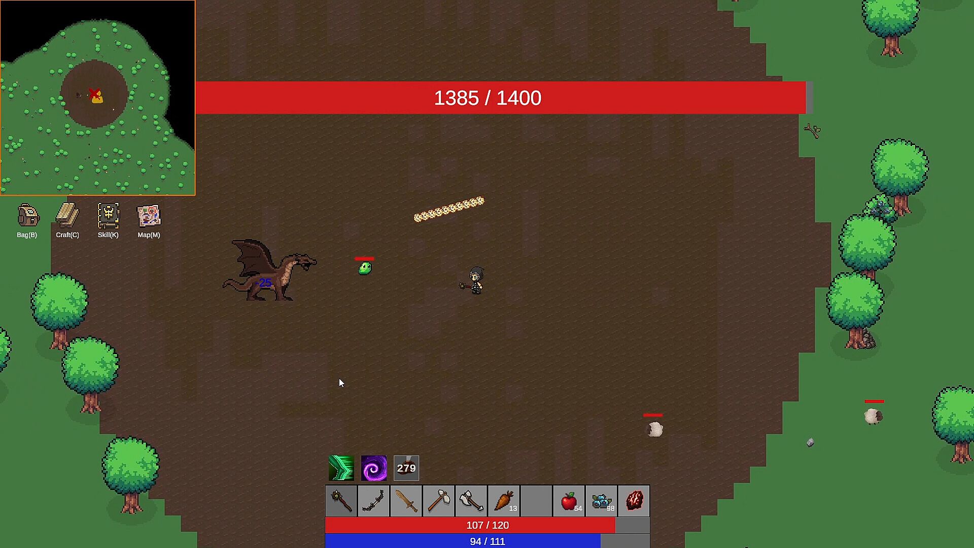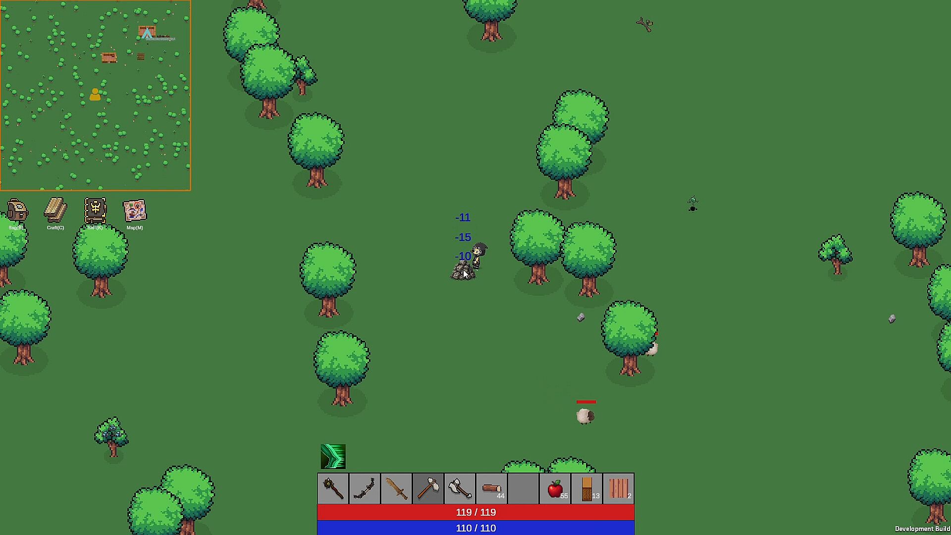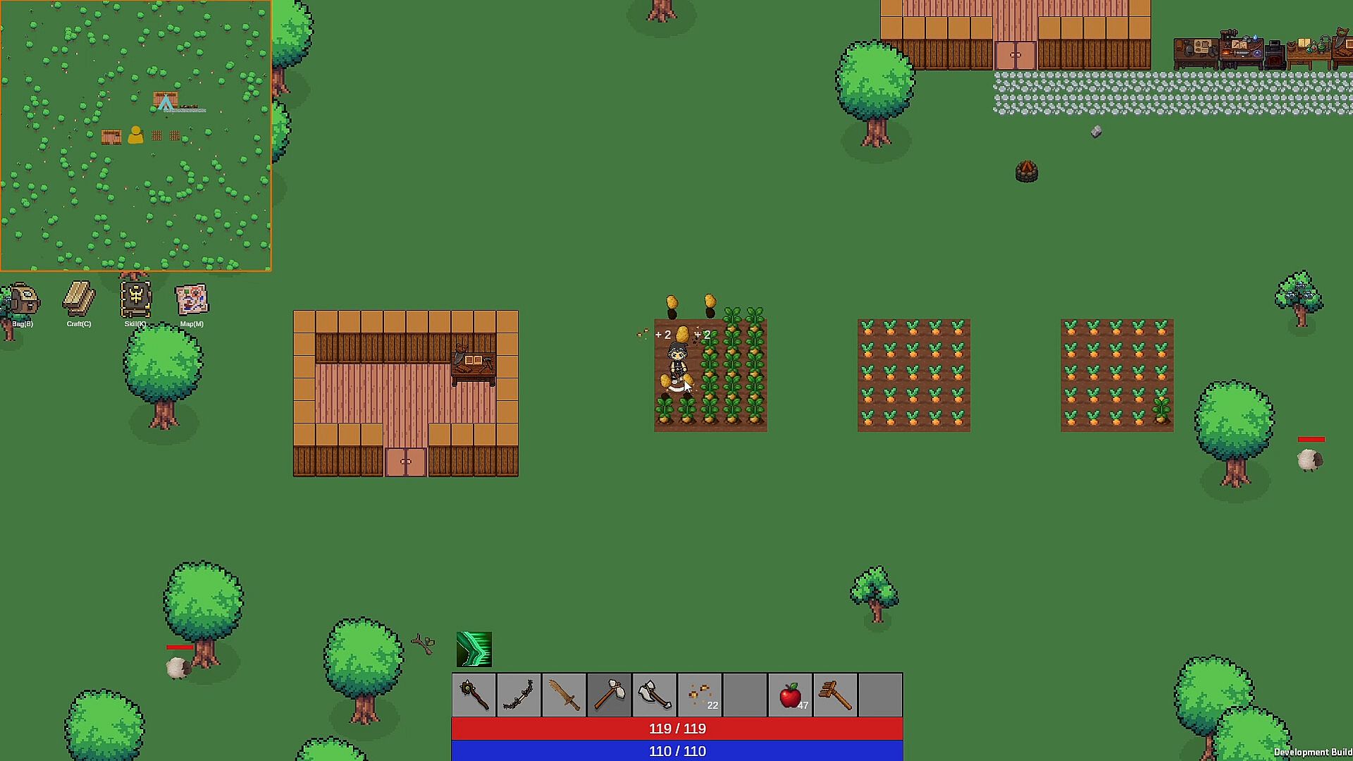 Boundless exploration – Journey across an expansive top-down sandbox, from grassy fields to new biomes yet to be revealed. The world is procedurally generated, filled with secrets, resources, and enemies to discover.