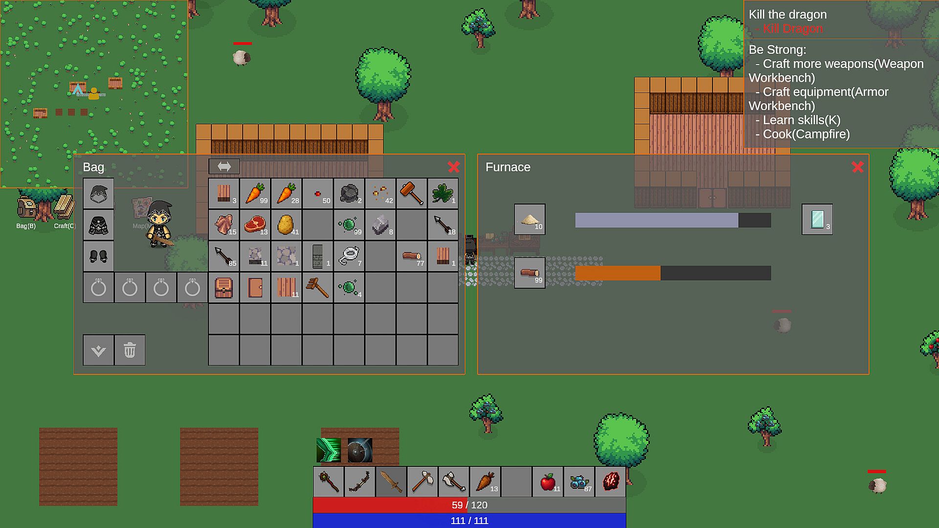 Mining and crafting progression – Chop wood, quarry stone, and mine metals such as copper, iron, mithril, and adamantite. As soon as you gather a material, you’ll unlock new recipes to craft at your workbench.