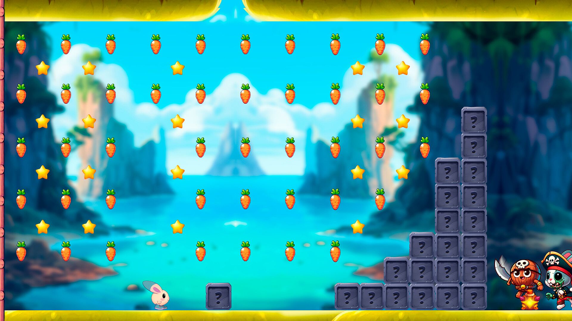 A dark island filled with pirates. The boss here is the Cute Pirate and his sidekick, the Fat Pirate Turtle.