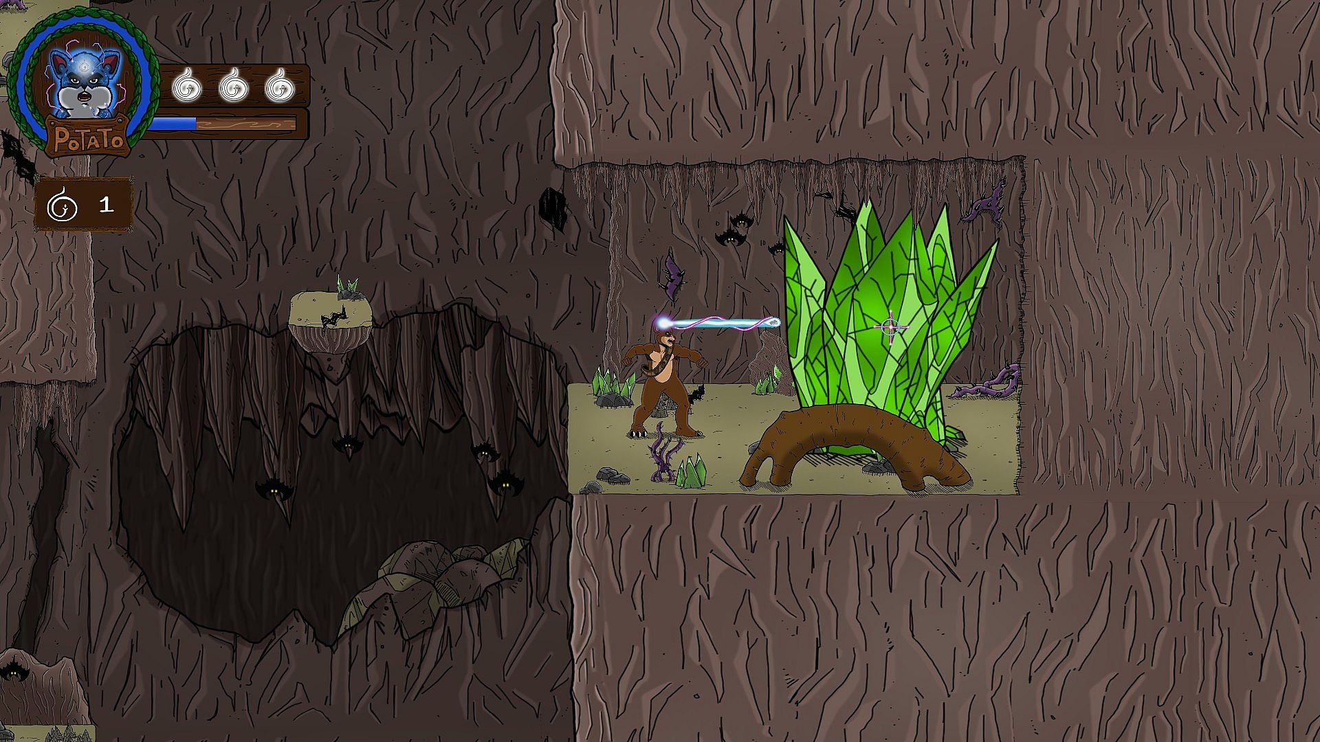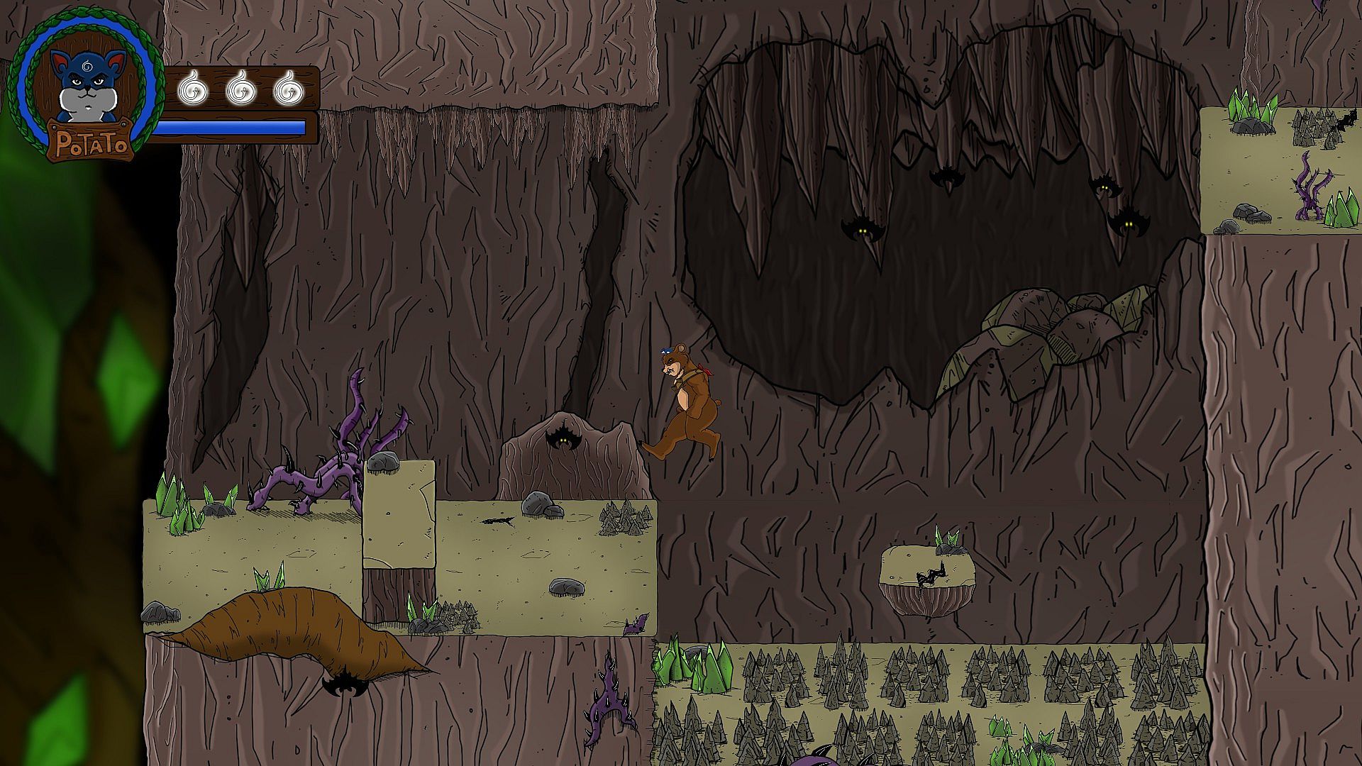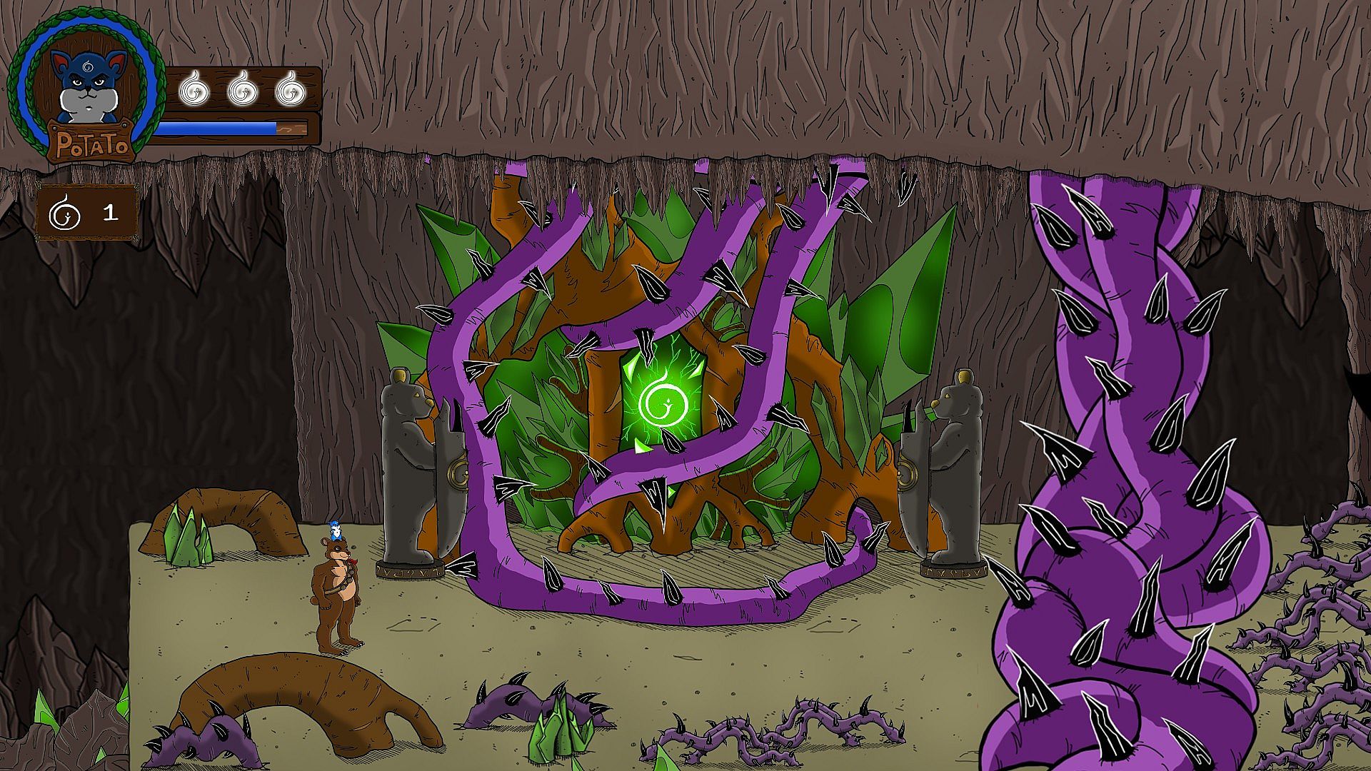 Take control of Potato, a young hamster from Potato Village, as he journeys into a colourful land made of various landscapes, from a secluded forest to the guts of an active volcano, through tropical islands and even into a cursed graveyard, all the while using his powers and those of his crew to fight the Queen's evil army and confront the mad monarch herself!