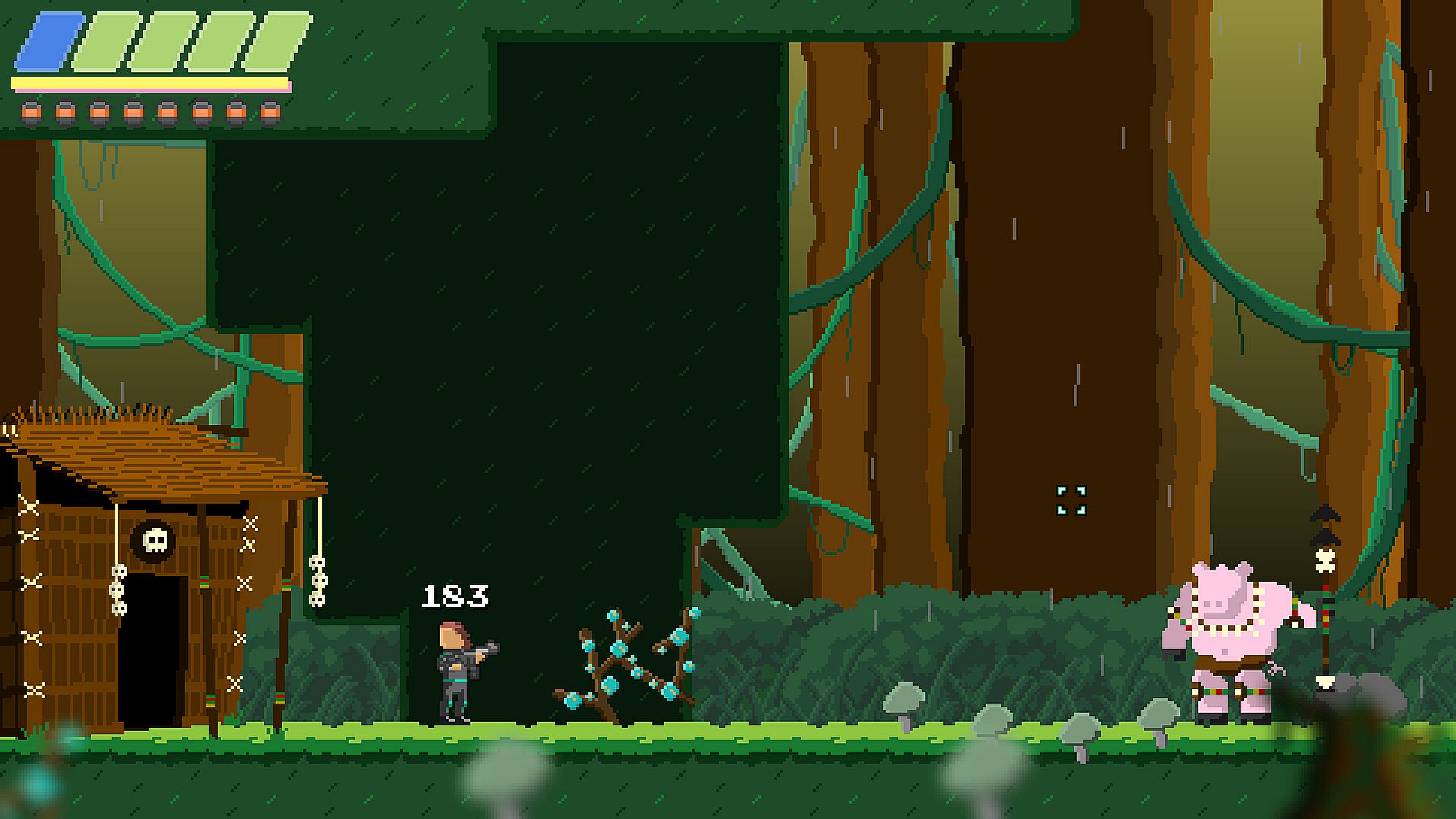 You play as Sullivan, a famous, and now retired bounty hunter, known for moon walking while fighting, defying laws of physics with fancy jump moves and air slides, and never backing down from an adversary. Our story begins when you are on your way to get a hamburger from a hip, local space pub, with your beloved cat, Claude Arthur Thatchmoore (C.A.T. for short). You are enjoying retirement, when something unthinkable happens. Henchmen of the feared and powerful cyborg bat pirates steal C.A.T. in an attempt to please their leader, who is fond of collecting all things cute and furry. Sullivan has no choice but to lay chase, and destroy anything in his way to get back his trusty sidekick, and friend.