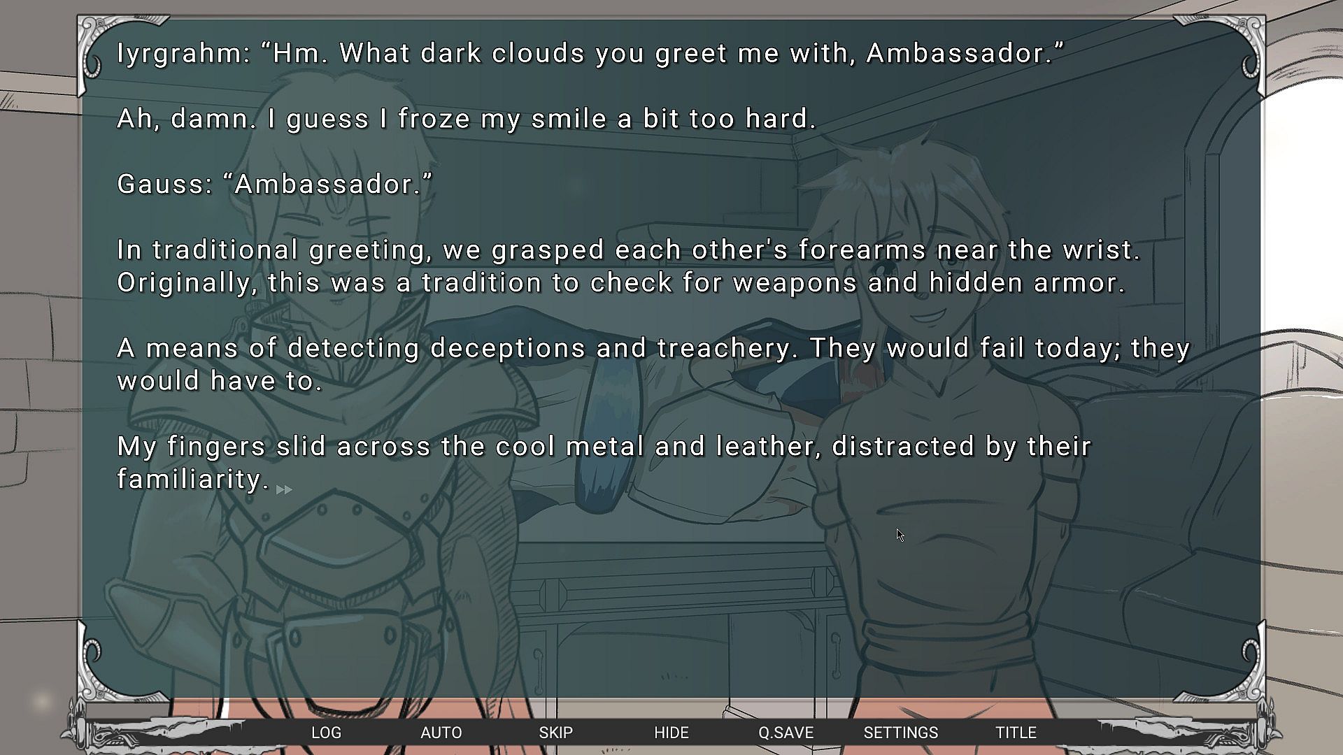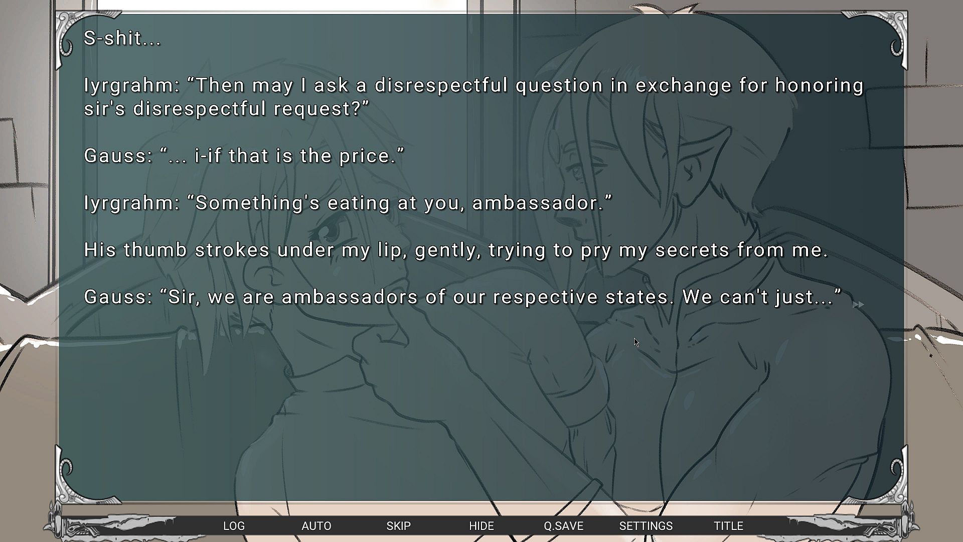 But, of course, keeping your king's sword in his sheathe isn't easy. What should've been a ten minute, boring, meeting with a foreign dignitary becomes a heated, passionate, affair that throws into question the very foundations of their allegiance to their nation.