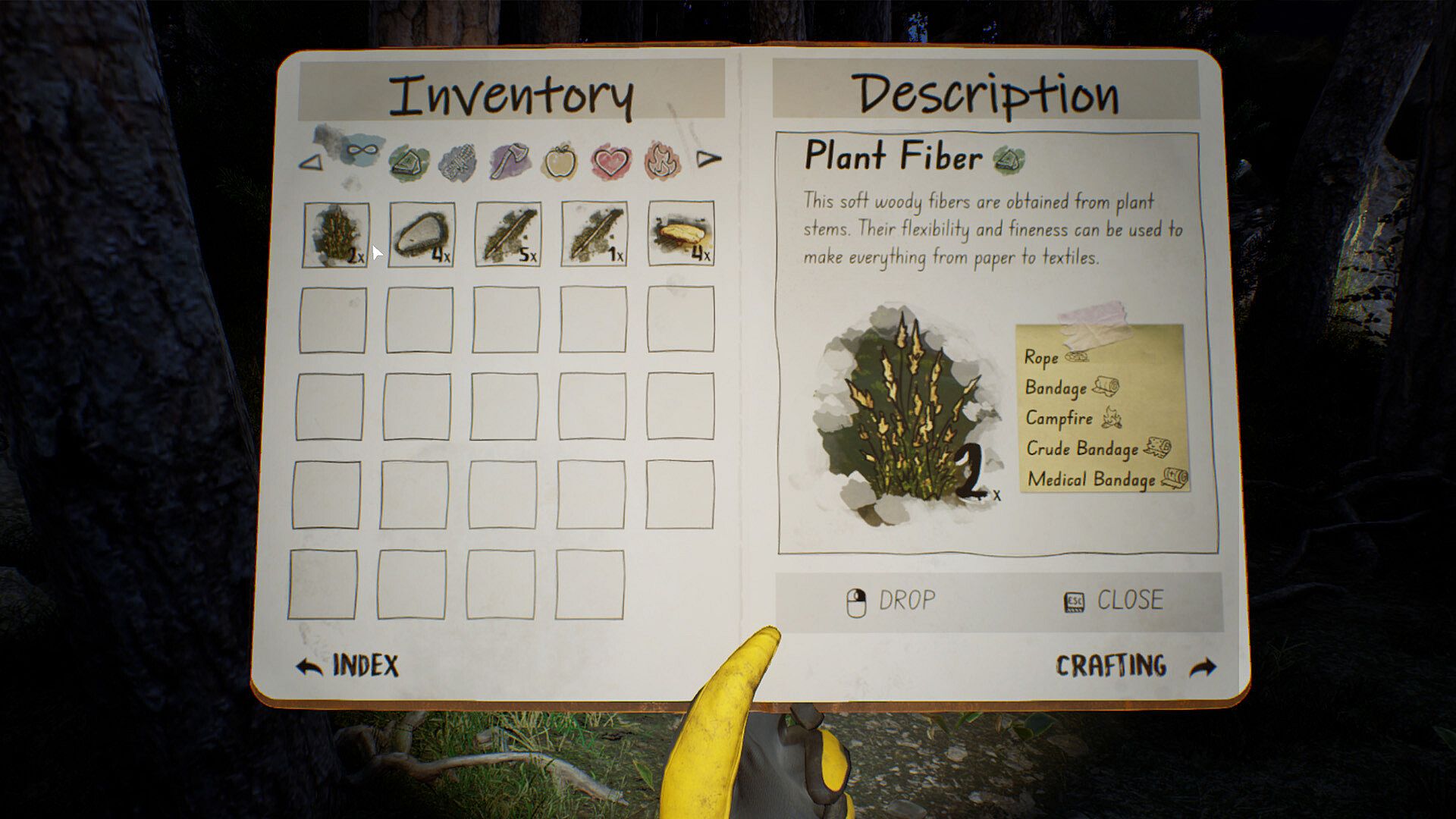 Monitor your well-being by checking your watch for updates on health, temperature, hunger, and thirst. Utilize your trusty notebook to craft items, and increase your likelihood of survival in the harsh wilderness.