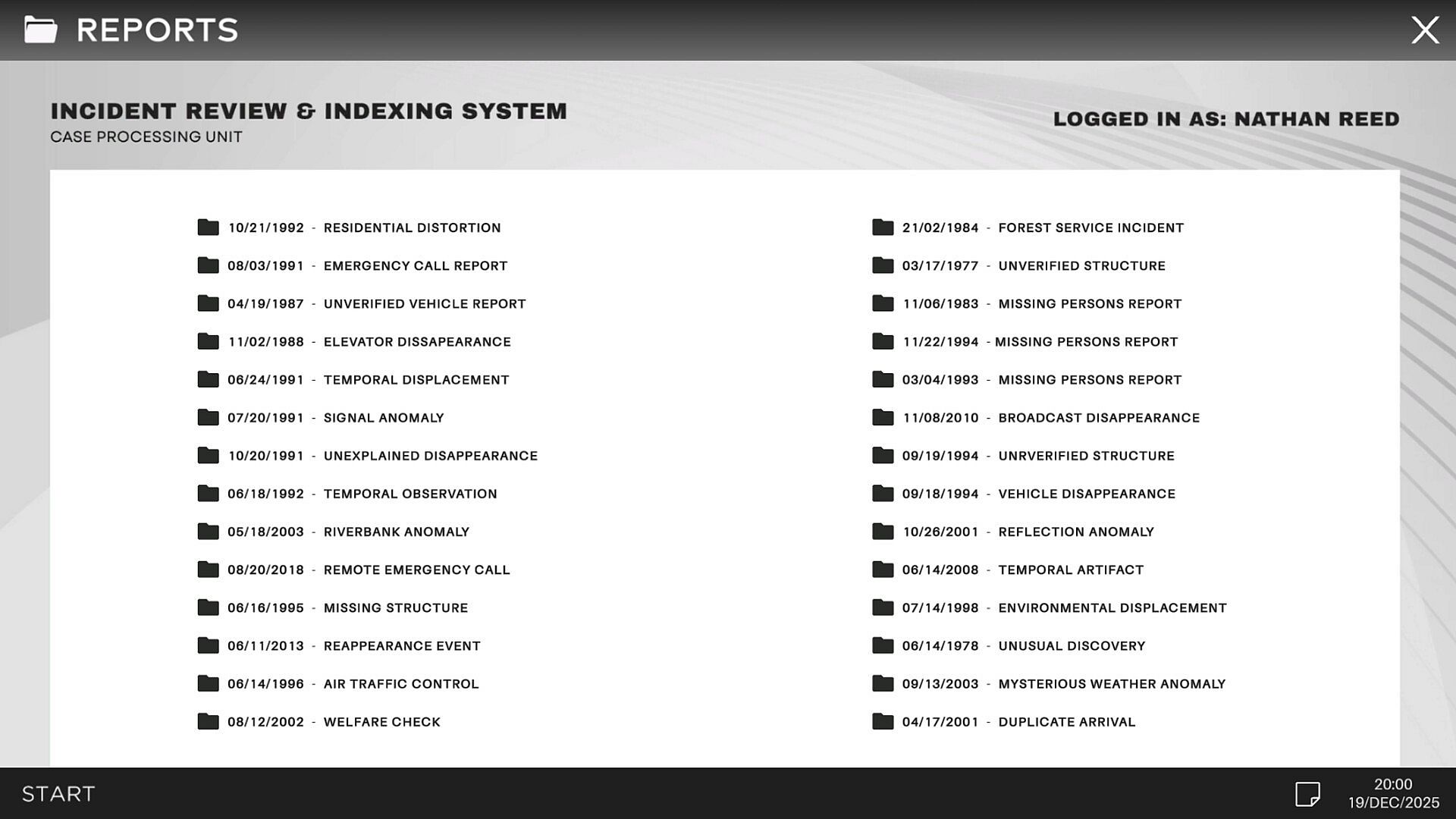 You play as Nathan Reed, Who has been hired to work the night shift at the Bureau of Investigation – Case Processing Unit, tasked with clearing a classified backlog of highly sensitive reports that were never meant to resurface.