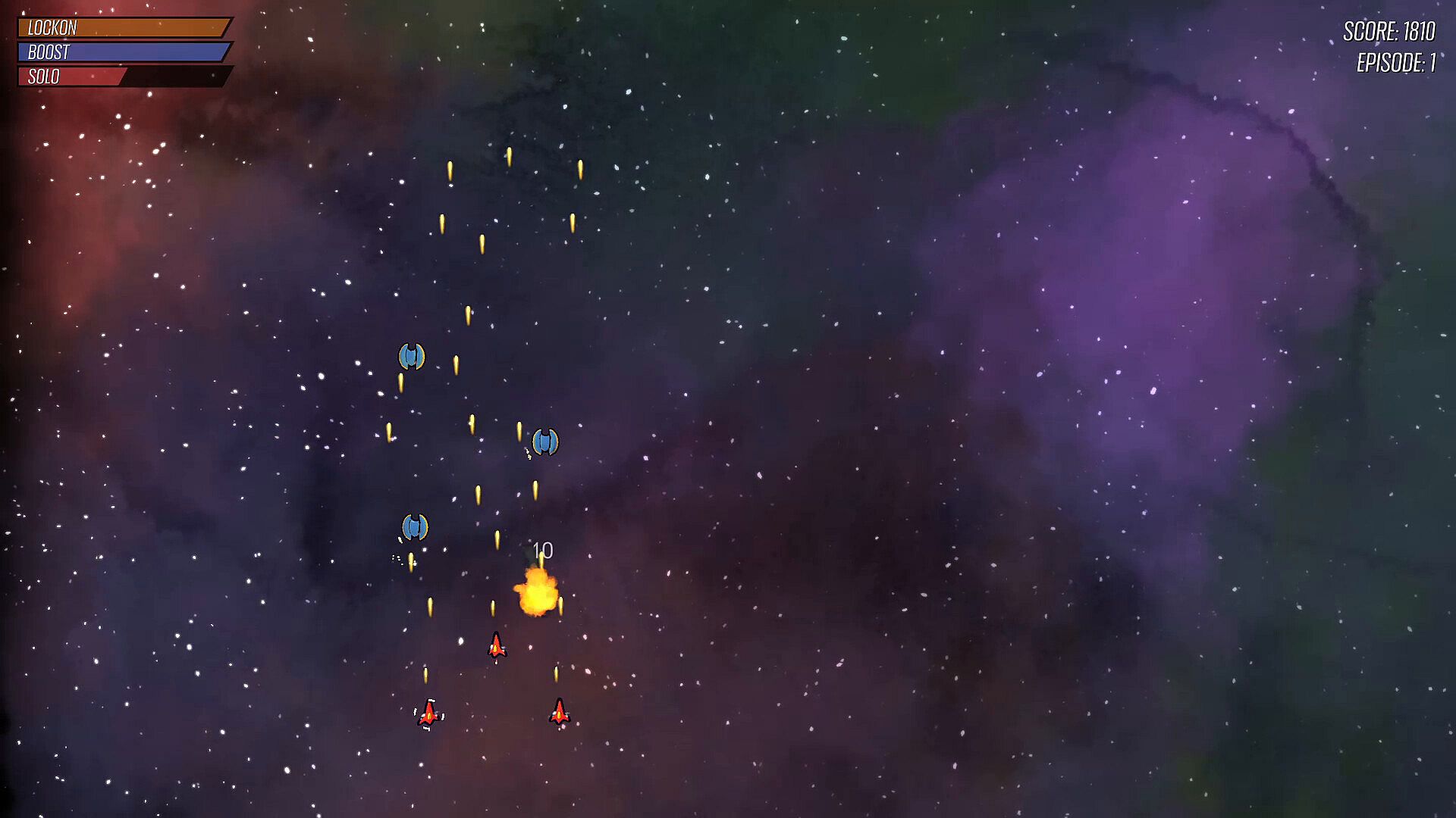The order of each episode is randomized to create unique challenges, which force you to pivot how you play. Push further in the game to unlock more power ups and episodes. Fly through asteroid belts, glide along slip-streams, grab powerups, and use your ships in unique ways to defeat bosses. Accompanying your actions is a dynamic soundtrack that responds to your moves as you make them, so use your Solo ability to freeze time for everything but one of your ships, and weave your squadron around enemies and lock-on missiles.