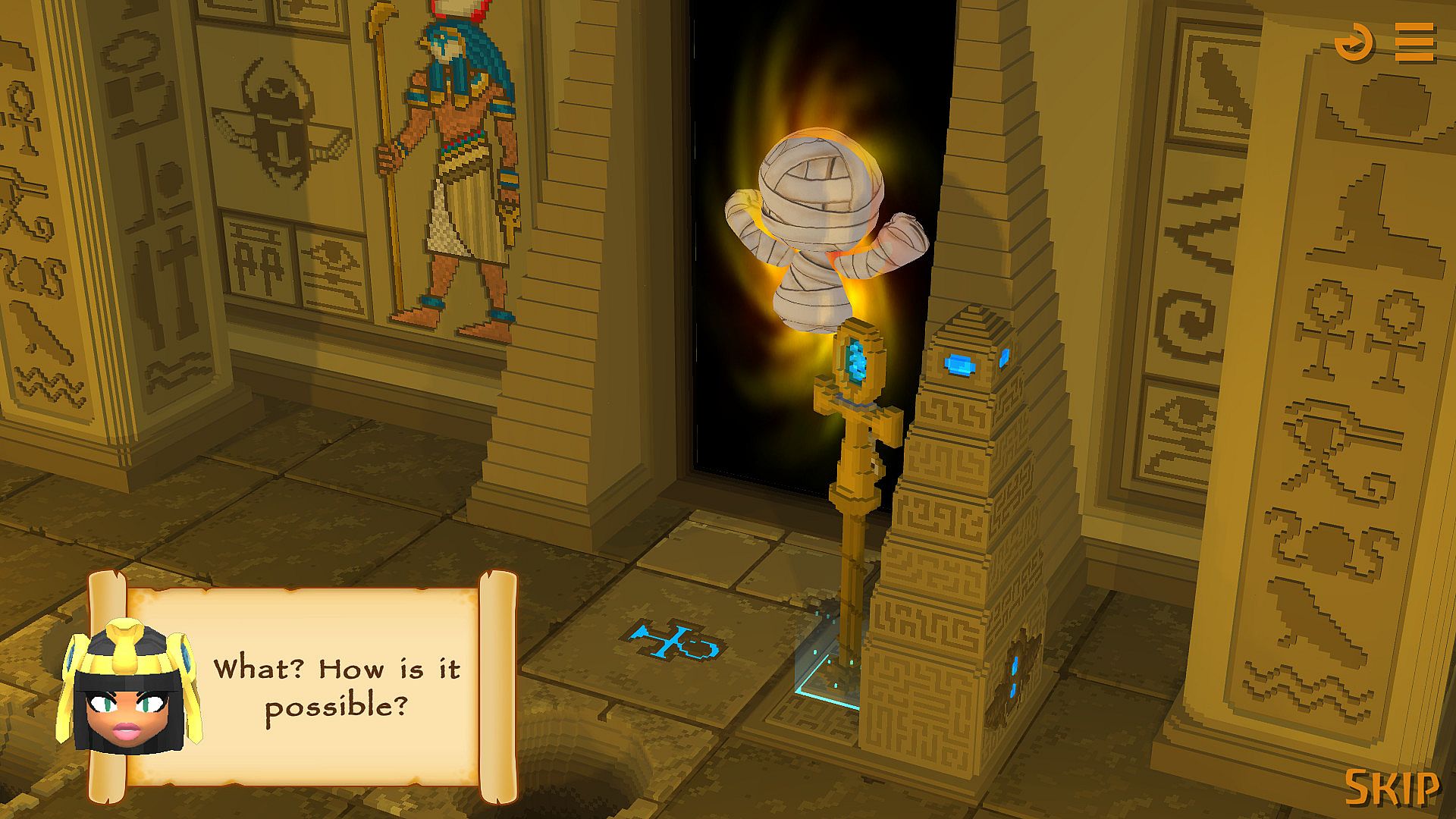 • Use the Wand to control mummies, allowing the player to select the direction and the mummies will move according to the player's vision.