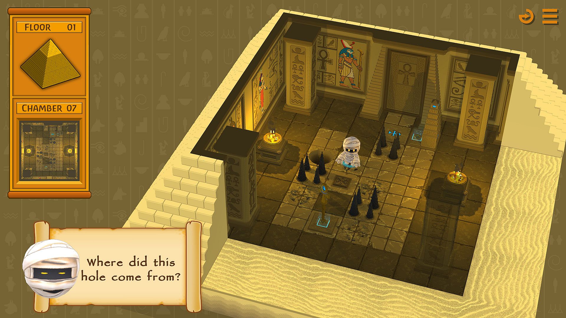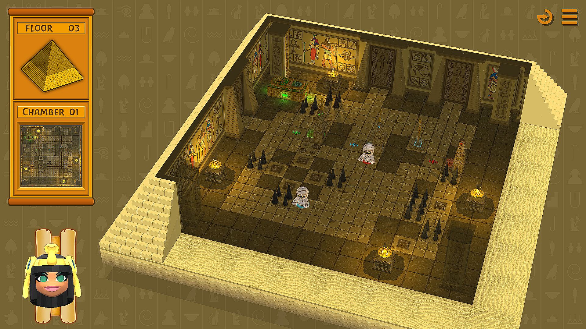 Using your puzzle-solving skills, guide all mummies through various chambers full of traps to finally set them free from the evil Pharaoh Cléo.