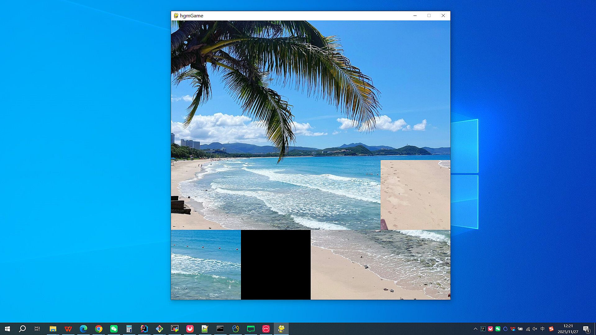 Game steps: Click the left mouse button on the image around the black square, and the image and black square will switch positions. The goal is to assemble all the small images into a complete image. The complete image is as follows: