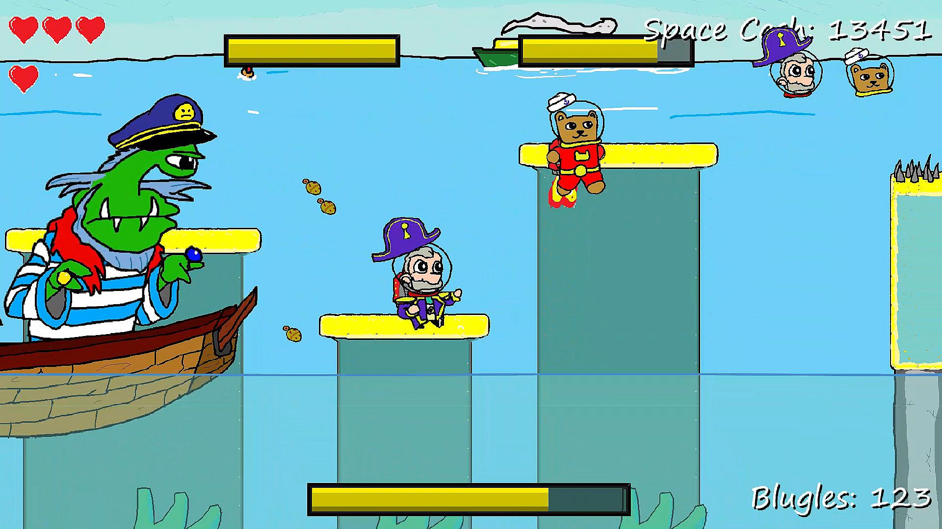 The residents of the Solar System have been frozen in Staseo Magnesius!! The Bear And The Admiral is a 2-D Platformer/ Run and Gun game with a bright cartoony art style.