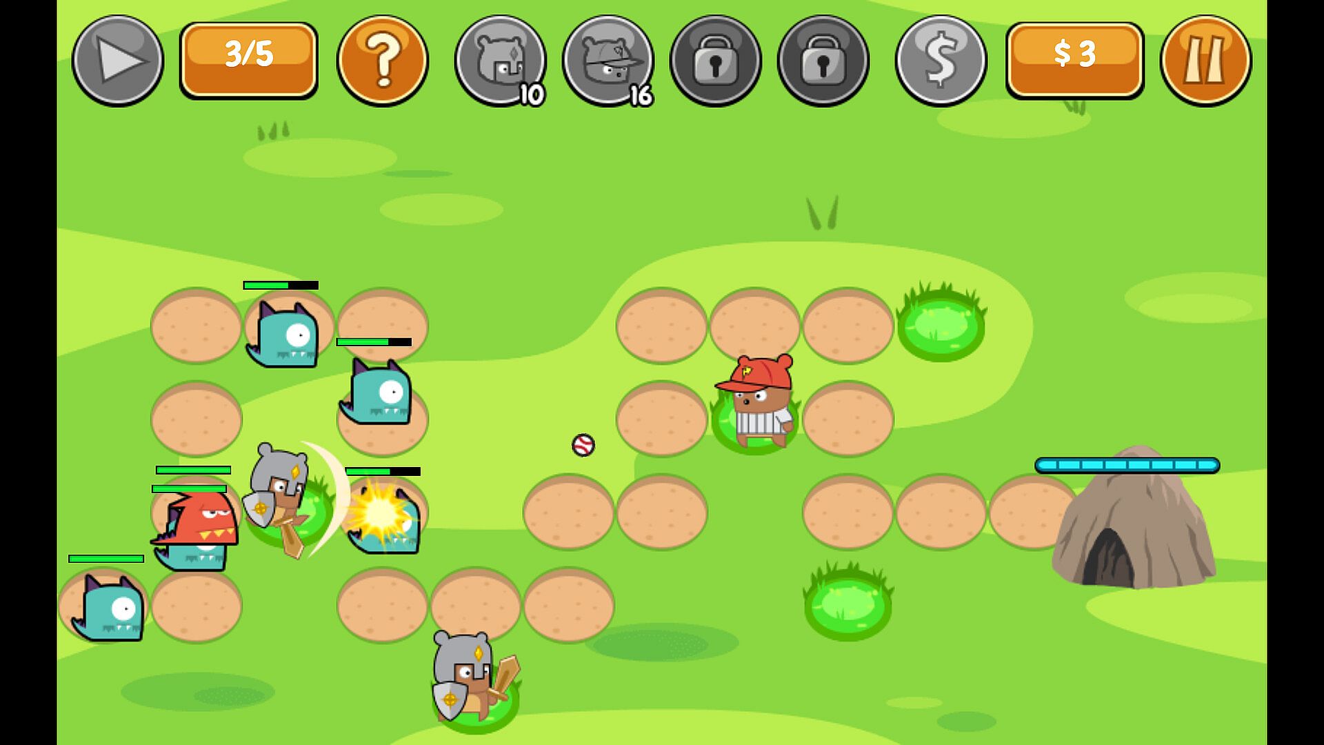 The invaders come in droves, determined to claim the land for themselves. But the bear warriors will not stand idly by. As the commander, you must carefully place defensive towers, deploy specialized bear units, and utilize powerful abilities to hold the line.