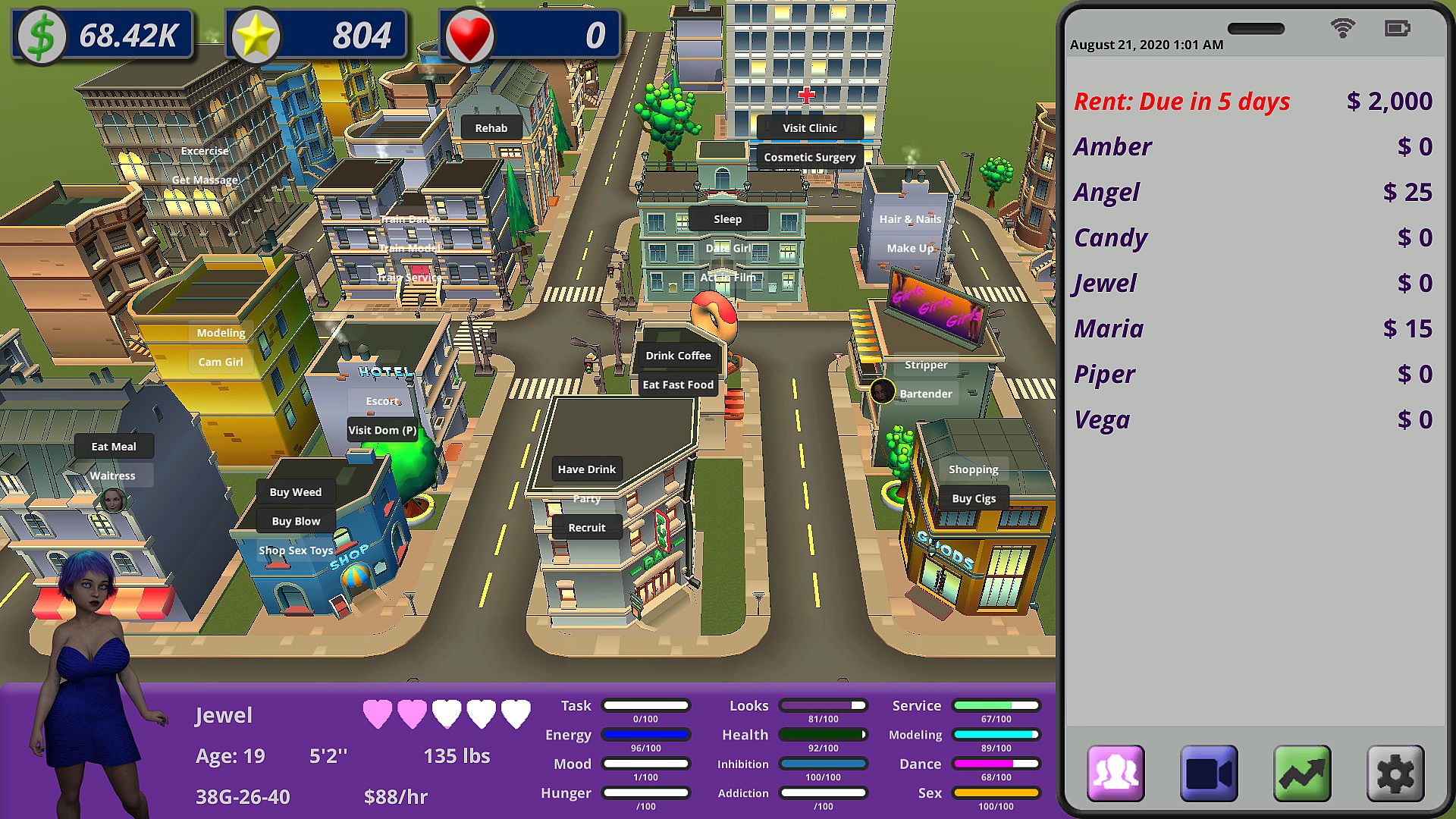 • Take the girls on dates to corrupt them and unlock the most profitable jobs