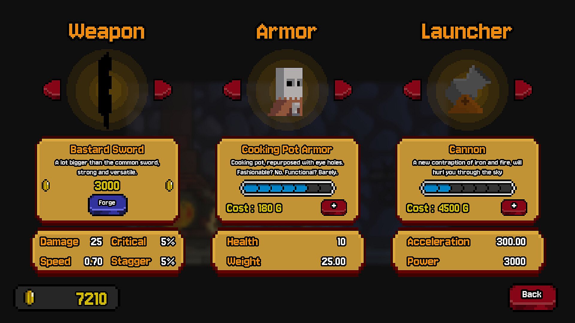 Almost everything is upgradeable: weapons, armor, launchers (to kickstart your adventures), potions, attributes, horses… you name it!