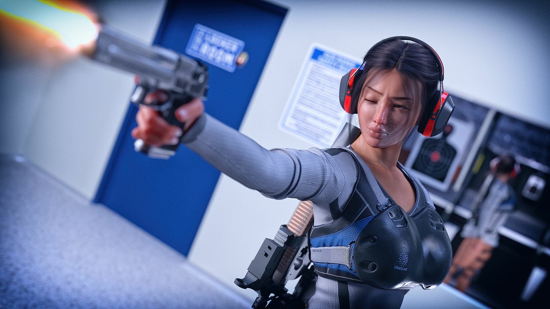 Riley is the main heroine of the novel. She is a tough woman with a charming appearance and Asian facial features inherited from her mother. At 26 years old, she has a perfect athletic physique. Although she isn’t aware of it, her genitalia forms a nice camel toe with common panties or tight clothes. Raised strictly by her general father, she has become independent and responsible. The need to care for her younger brother led her to leave her military career, which put her in a difficult financial situation. When an opportunity arose, Riley was ready to risk her life to climb out of this desperate financial hole.