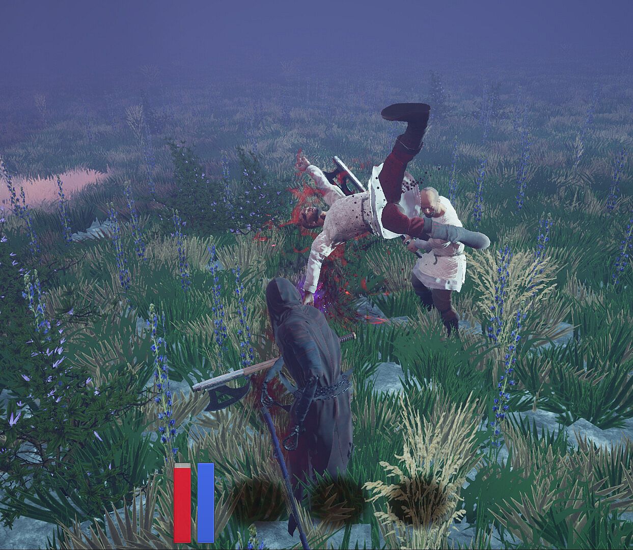 * Use your weapon (scythe) with different swings and combos.