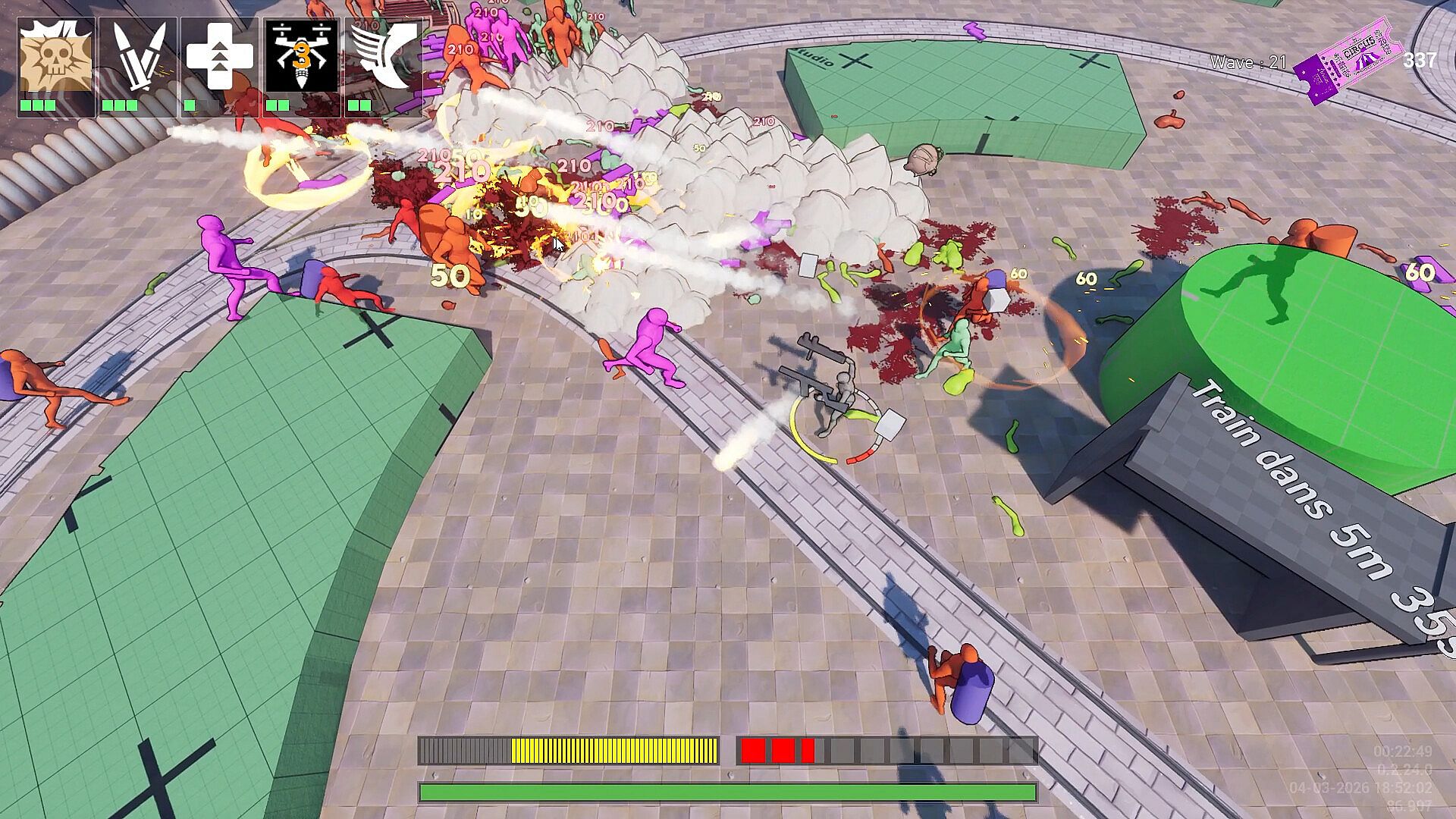 Autonomous drones, periodic bombardments, movement-based effects, aggressive scaling — every run builds a different identity.