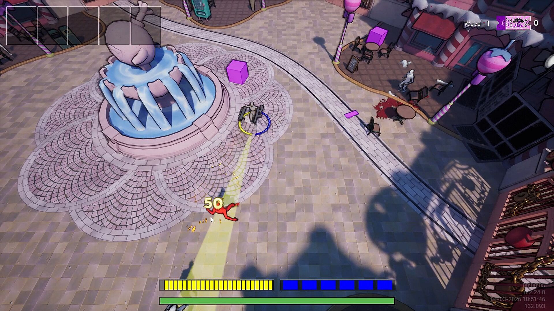 Gingerbread mascots, aggressive neon lights, cheerful music. Beneath the sugary surface lies a carefully orchestrated massacre.