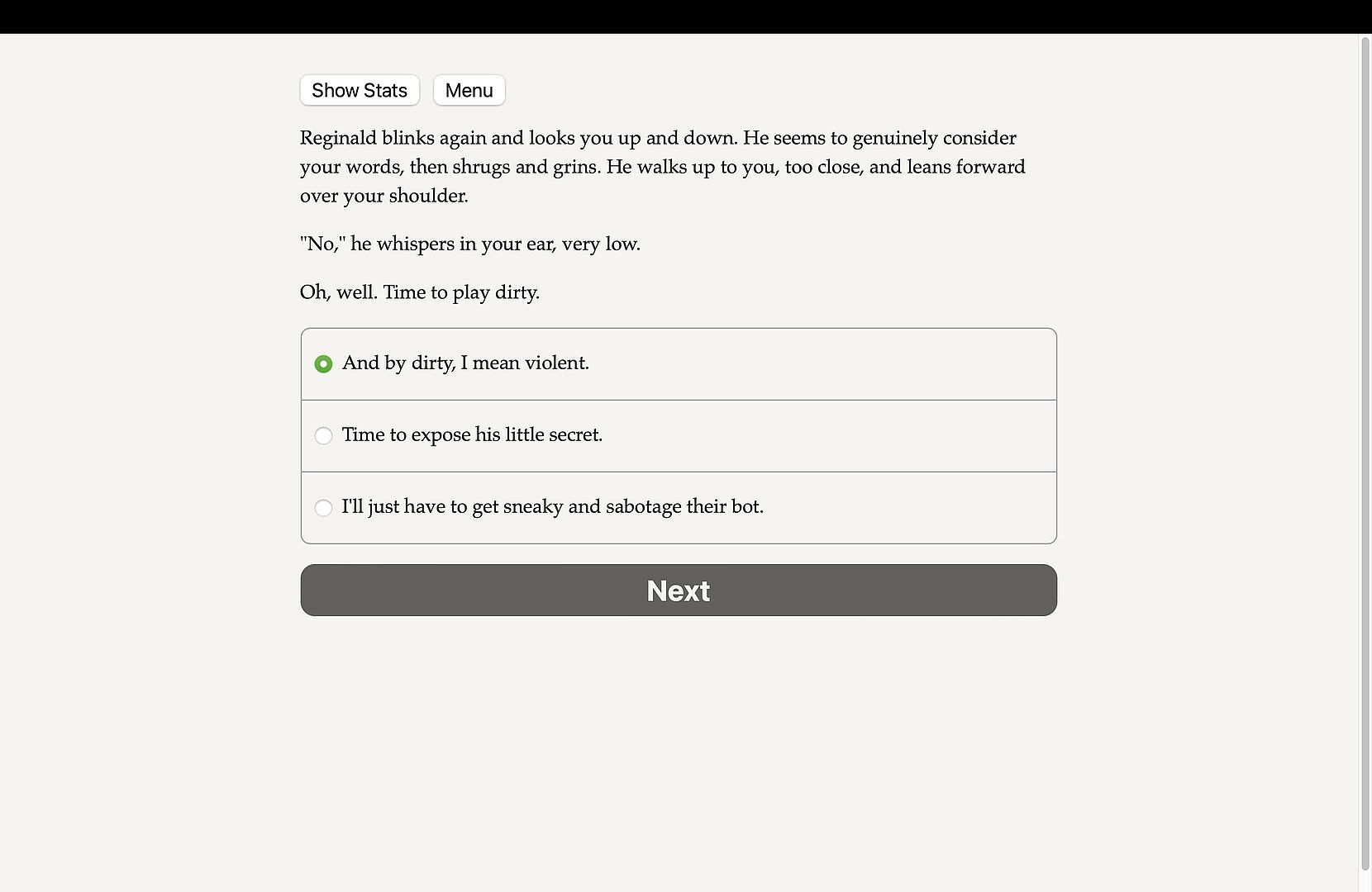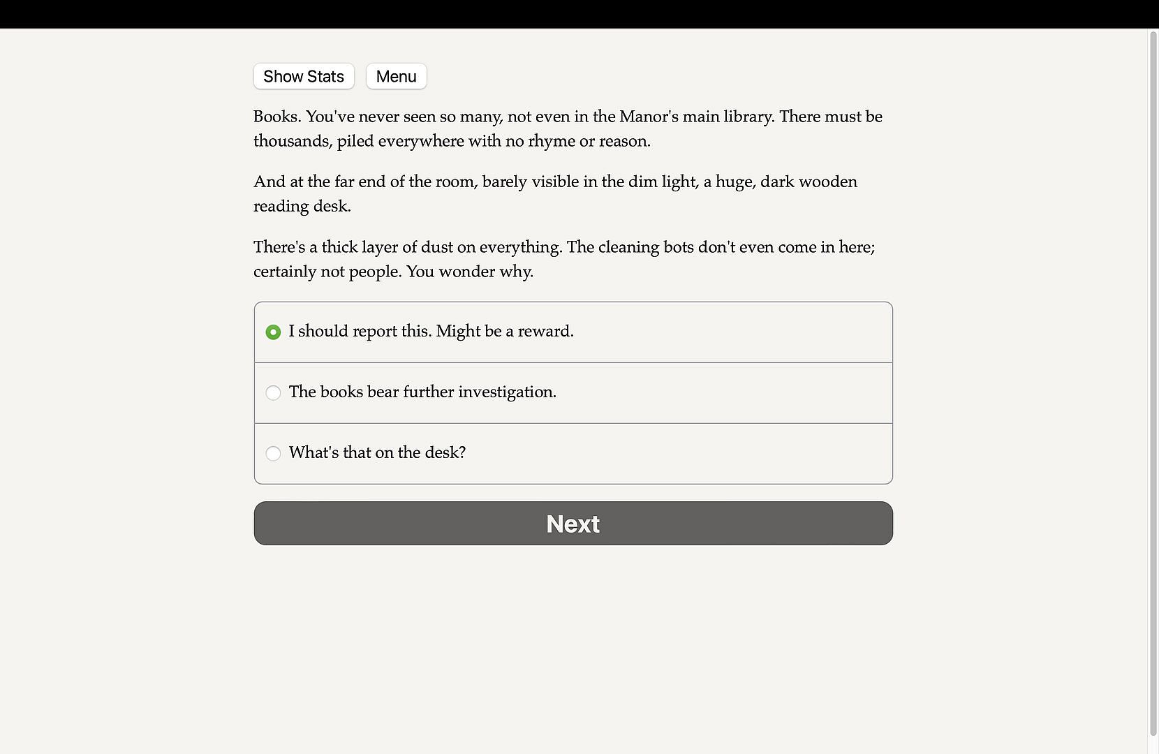The Butler Did It is a 300,000 word interactive novel by Daniel Elliot (and a finalist in the Choice of Games writing contest) where your choices control the story. It's entirely text-based—without graphics or sound effects—and fueled by the vast, unstoppable power of your imagination.