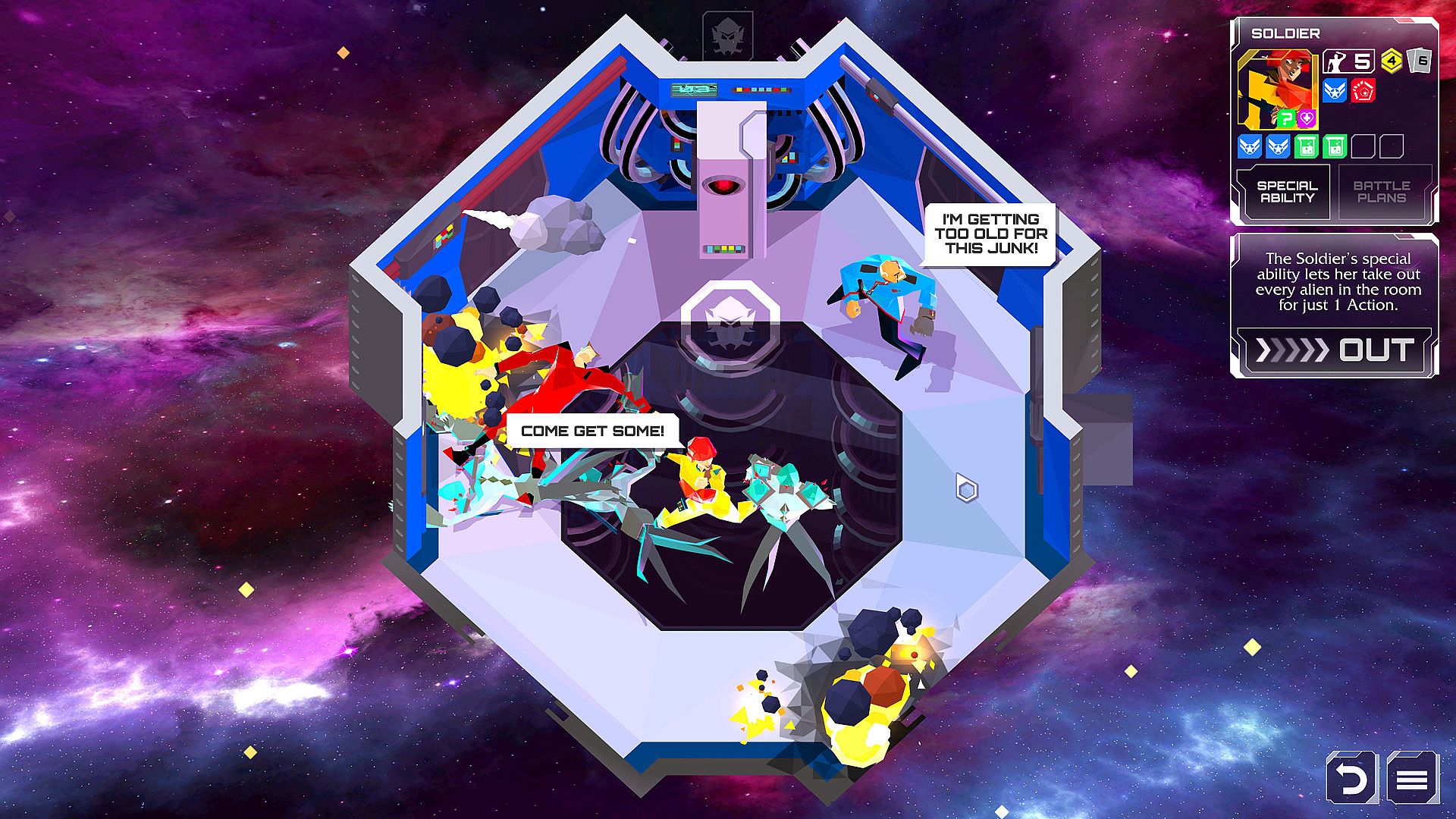 • Cargo Hold - Bust open the cargo pods to grab lasers, scanners, and other helpful gear.