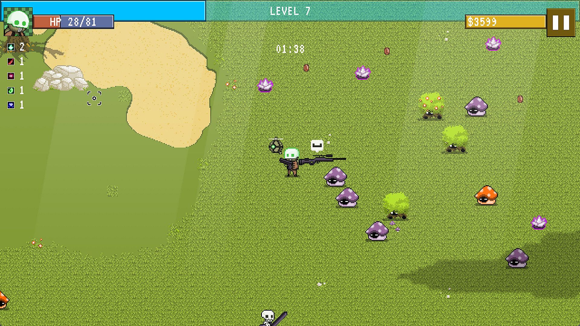The Champions of Lootheim is an action roguelike where you face hordes of creatures and try to survive in arena-style maps for 10 minutes. To aid your adventure, collect coins dropped by defeated enemies to evolve one of your 12 attributes during the game, which can be chosen from three random options. Enemies also have a chance to drop crystals when defeated, which are used to purchase permanent upgrades in the shop. Powerful enemies drop chests with equipment that can be used during the game. Characters with unique abilities can be unlocked by fulfilling specific conditions. Use all of this to create unique gameplay combinations and have fun.