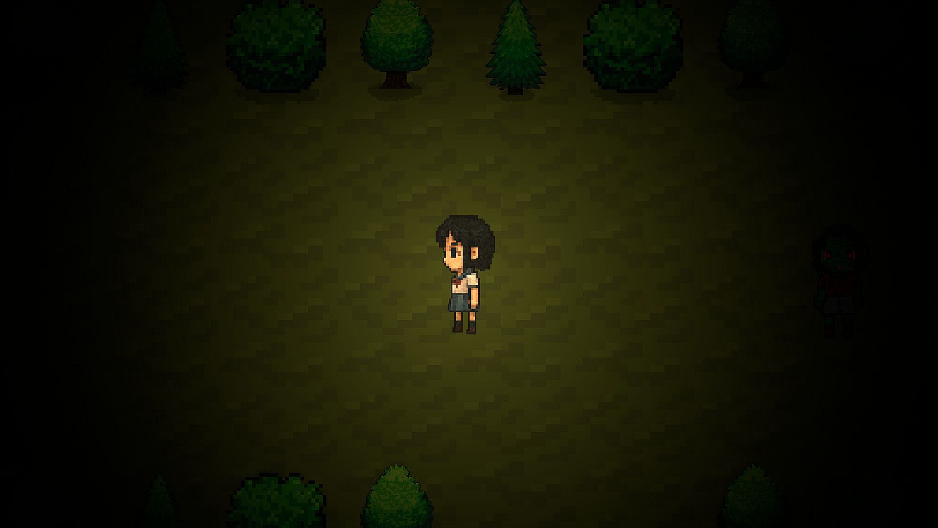 Top-down pixel horror with a heavy emphasis on a spooky atmosphere and cryptic storytelling.