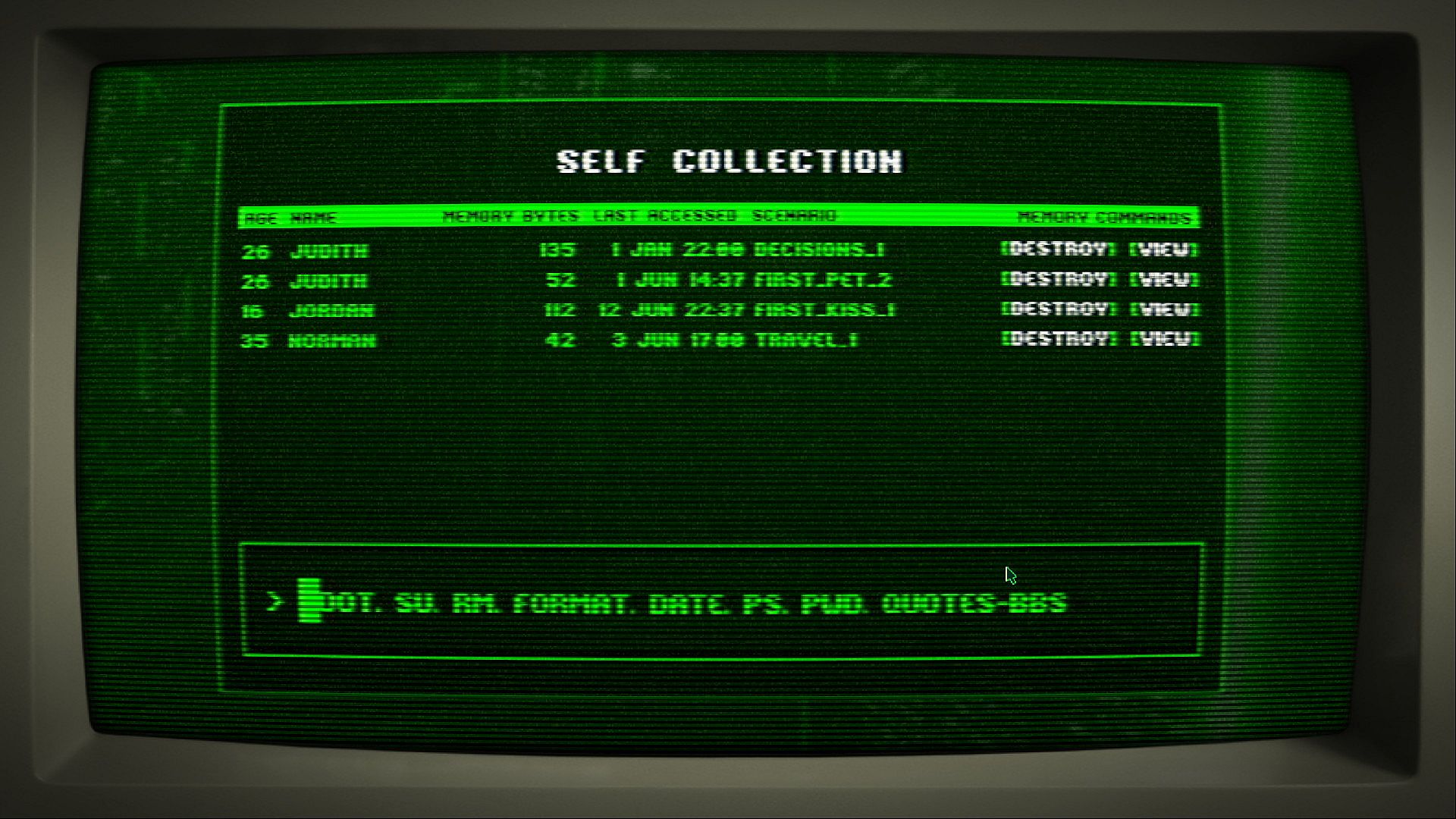 - Type out 'commands' within the Created Memories and Self Collection menus! Connect to the Quotes-BBS! And guess the root password.