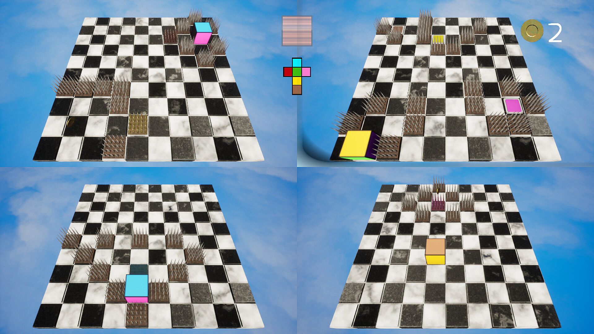 The Cubes is a colorful puzzle adventure in which you control four unique cubes to solve spatial challenges. Switch between the cubes, activate buttons, overcome spikes, collect coins and solve puzzles in a relaxing yet brain-teasing experience.