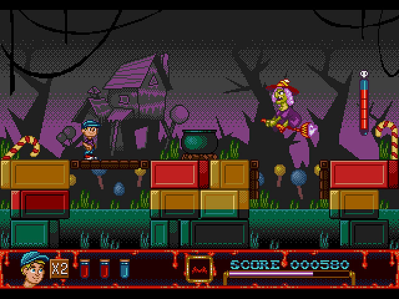 Nick Nettles, a mall worker in Woodsboro, uncovers the legendary book of Wicked Carols and chants its words to summon dark djinn spirits amid the holiday rush. Chaos erupts in Illmoore Bay, where players take control of its protectors to halt the curse's spread across the town. This casual indie platformer adventure delivers precise jumps and exploration through six distinct worlds. Traverse 18 unique levels with a world map that tracks progress and lets you revisit cleared stages. Battle world-specific bosses, switch between three playable characters, and hunt secret spots for upgradable abilities and unlockable powers. Achievements and a Boss Rush mode add replay value to this fun platforming adventure for all ages.