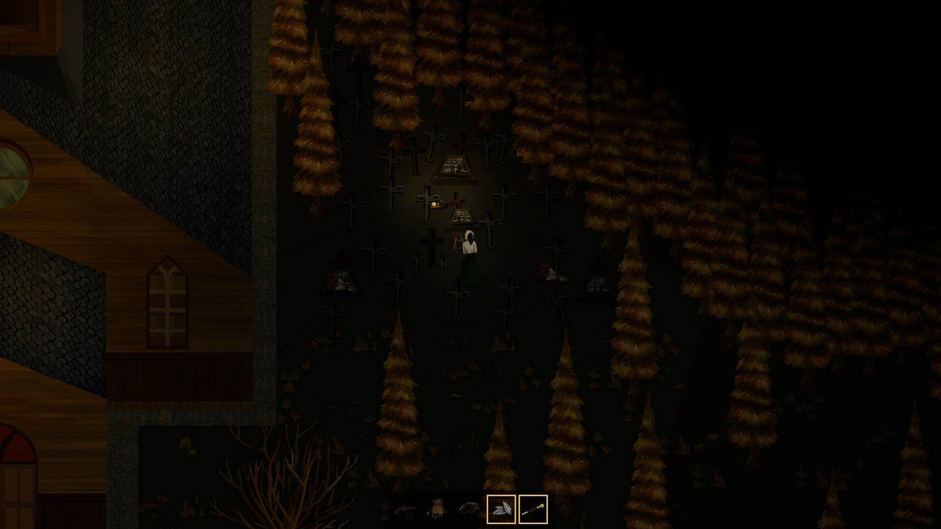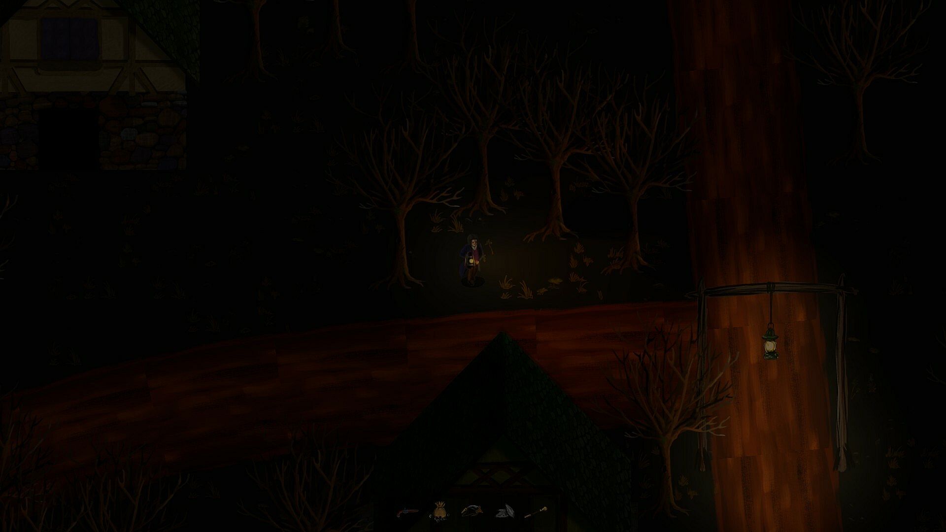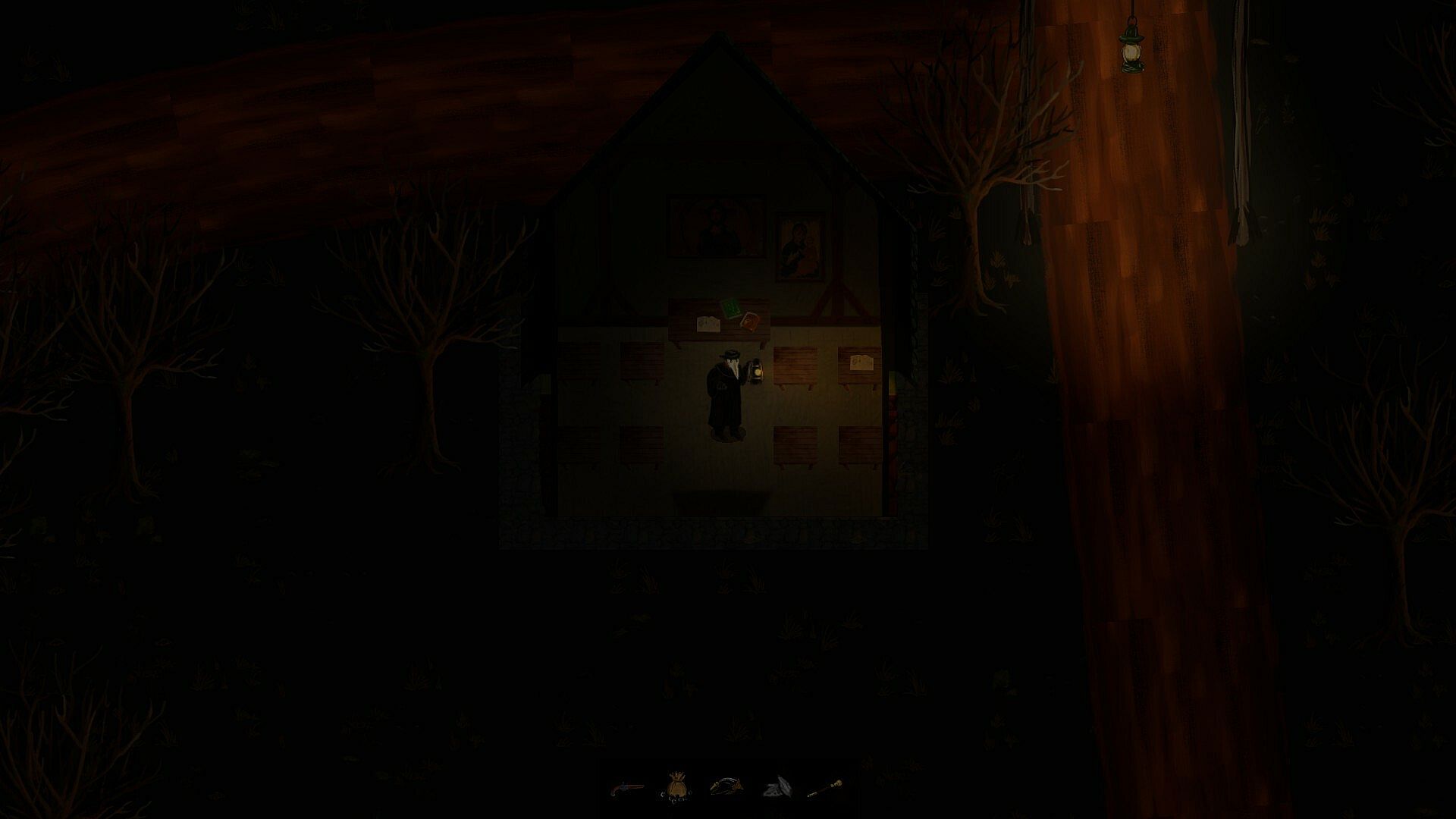 Scavenge for ingredients like mushrooms and herbs, then brew decoctions to slow the plague, boost mental resistance, and aid you in the darkness.