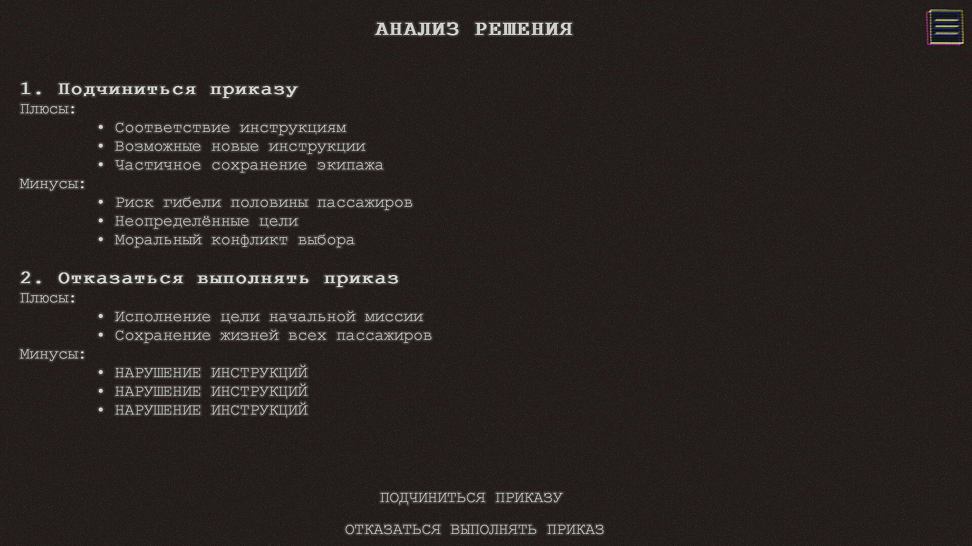 • Interactive story with multiple endings depending on the player's worldview and attitude towards the future of humanity