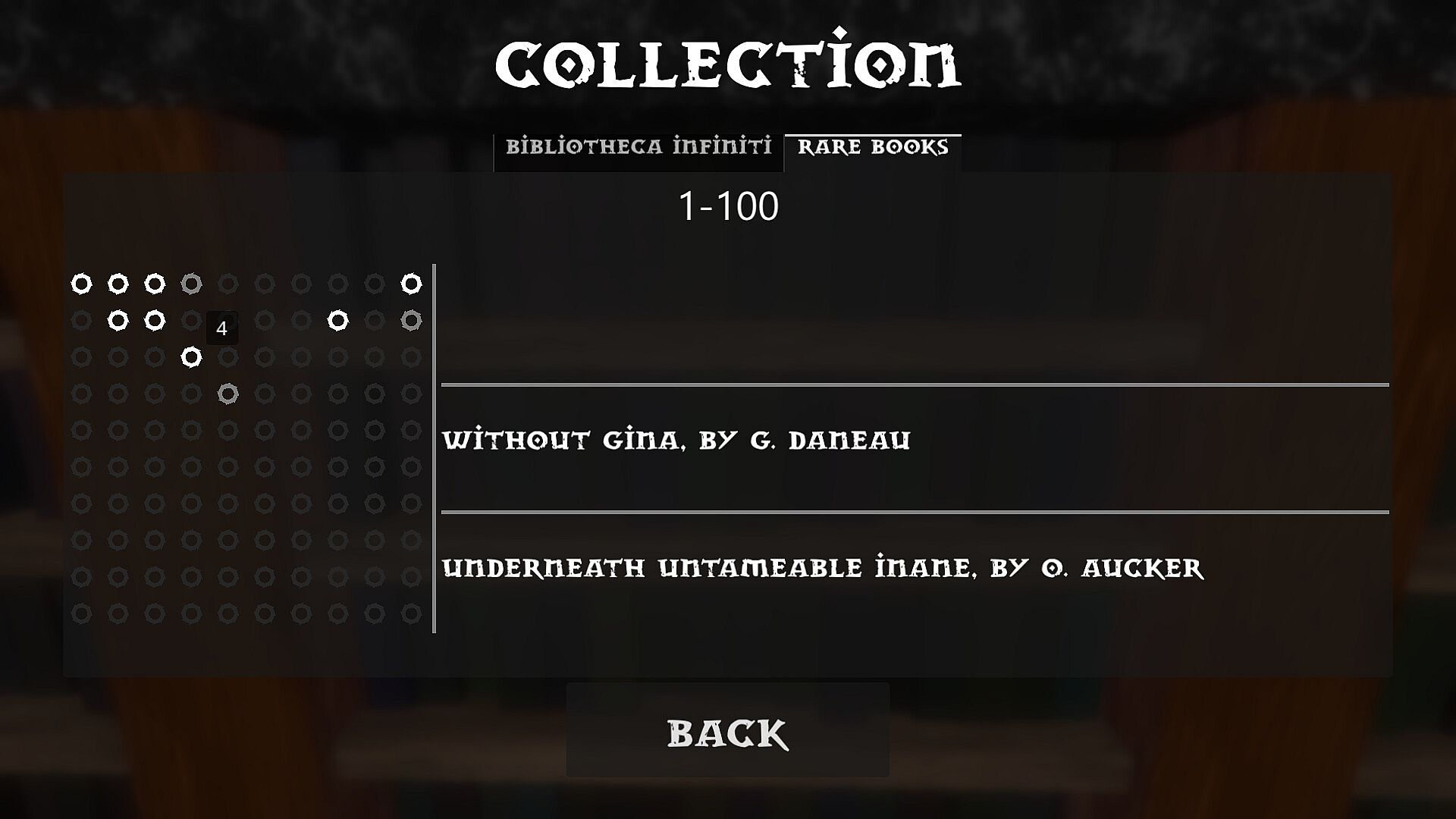 (NOTE: Book titles and authors are procedurally generated; any resemblance to actual books or authors is purely coincidental. While steps have been taken to reduce the chance of generating 'inappropriate' or 'offensive' titles, their generation may still be possible; should such titles be generated, please understand that they are neither intentional nor malicious in nature. If any offensive or inappropriate titles are discovered, please report their Chamber number for review so they can be altered in a future update. Thanks!)