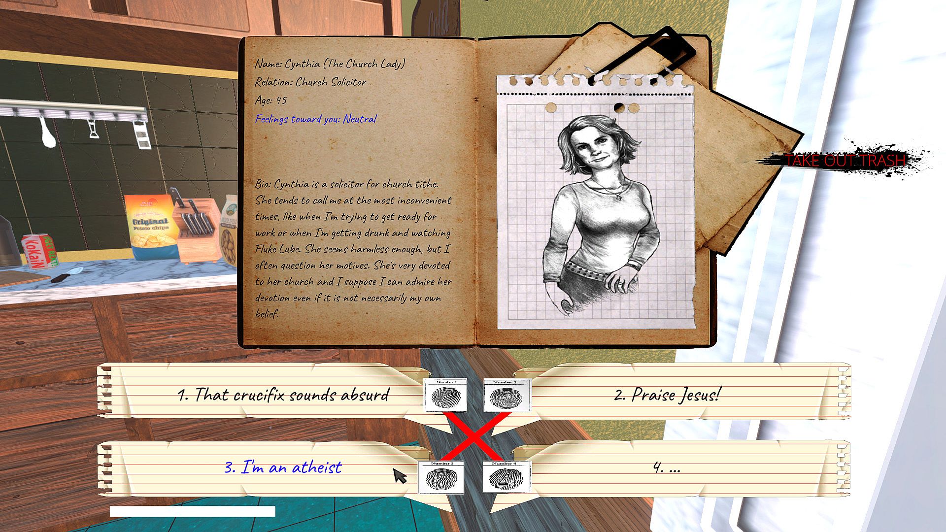 The Detective Chapters: Part One is a choices matter first-person adventure game. In this game, you are an aspiring detective trying to make a name for yourself, but your life seems to be heading in all the wrong directions. Your mother is a drug-addicted alcoholic, and your father died mysteriously, perhaps it was suicide, but the evidence is lacking. You're a college dropout and now work the graveyard shift at the local convenience store to make a pittance. Your girlfriend is relentlessly on your butt about going back to school, but maybe you have other plans. Choose your path to happiness and find answers to secrets dead and buried.