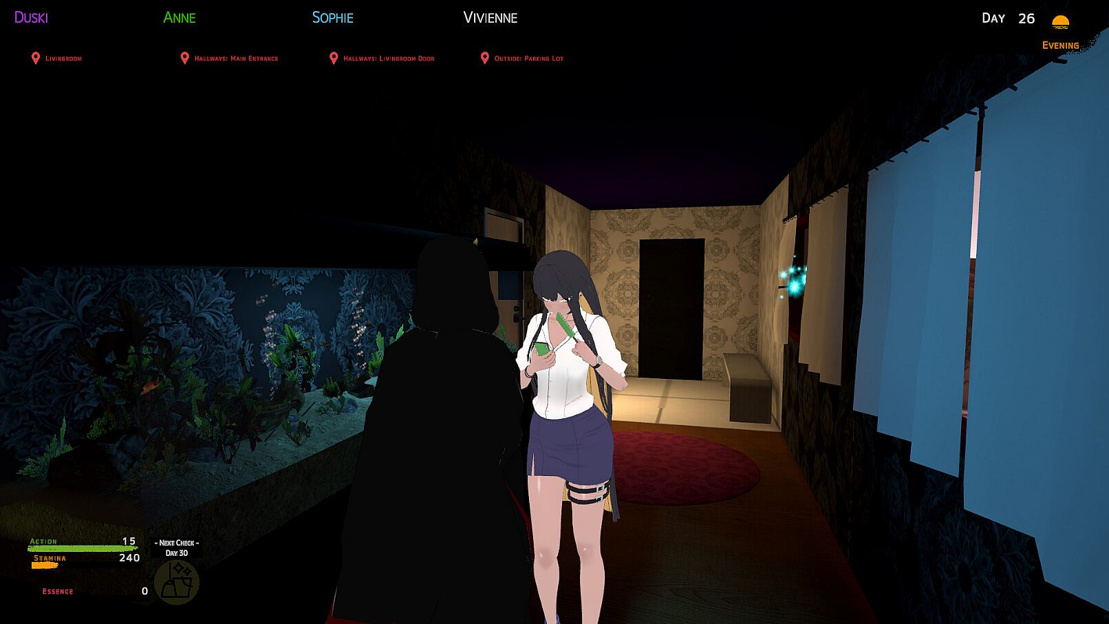 Relaxing day-to-day life with the dorm inhabitants in a beautiful, realtime 3D rendered environment with anime-like characters. Manage your stats as you maintain yourself and the dorm. Unlock new skills to make progress easier.