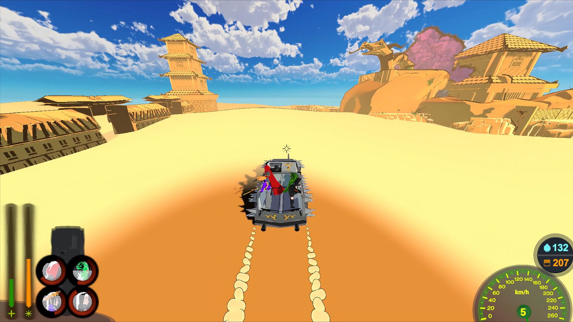 The Drylands is a car-combat RPG set in an ever-changing world that changes every run as an ancient power shifts the sands revealing previously uncovered secrets.