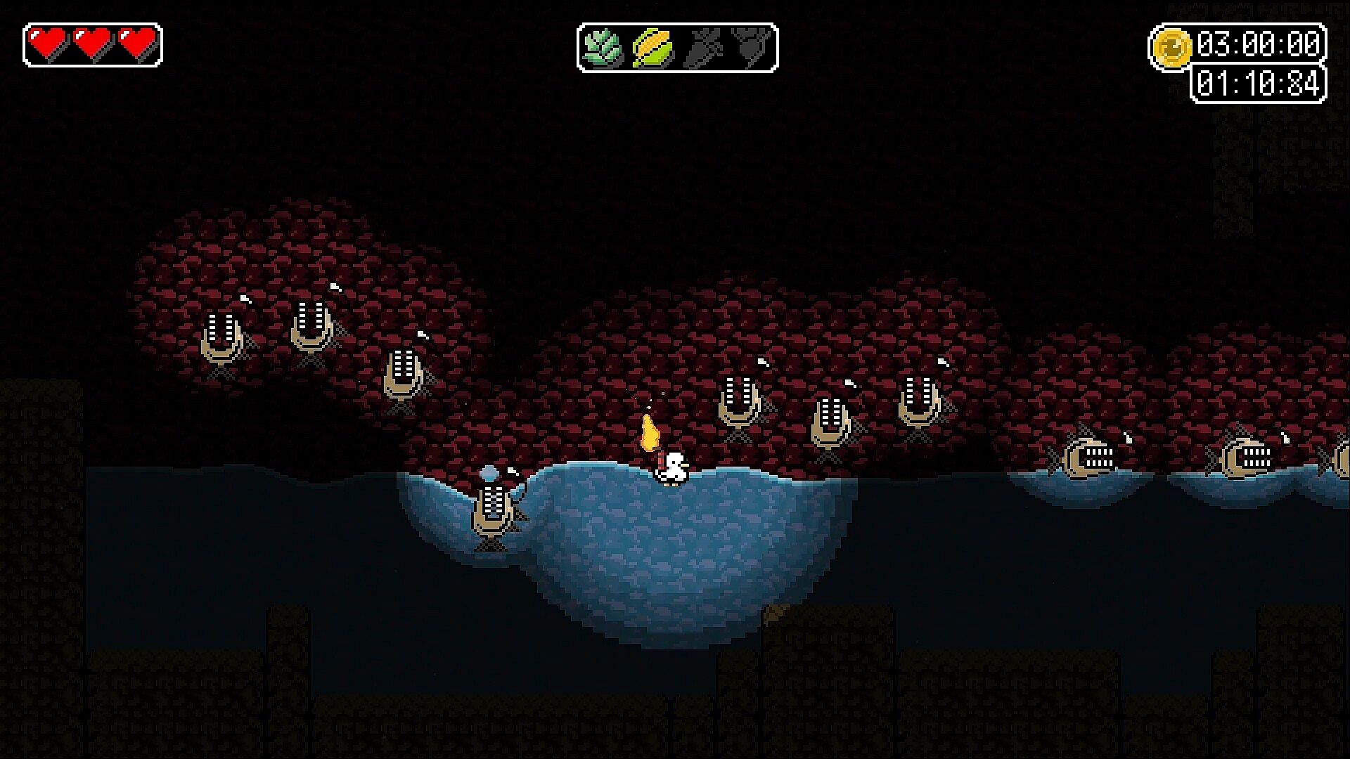 Try to collect the 4 vegetables in each level of the game, sometimes well hidden behind secret walls. But beware of the traps set by the hunter!
