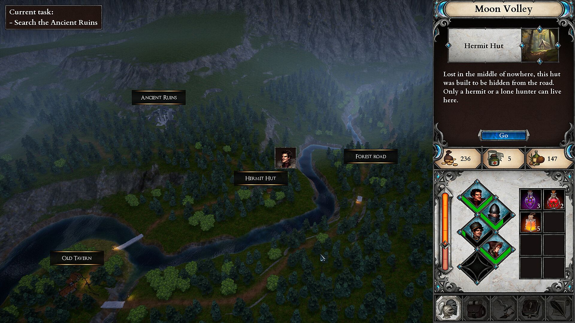 Heroes begin their journey near a city-state called Porta Terra at the mouth of a great river. During the game, the player explores the surrounding lands, cities and settlements, performing tasks for the local ruler.