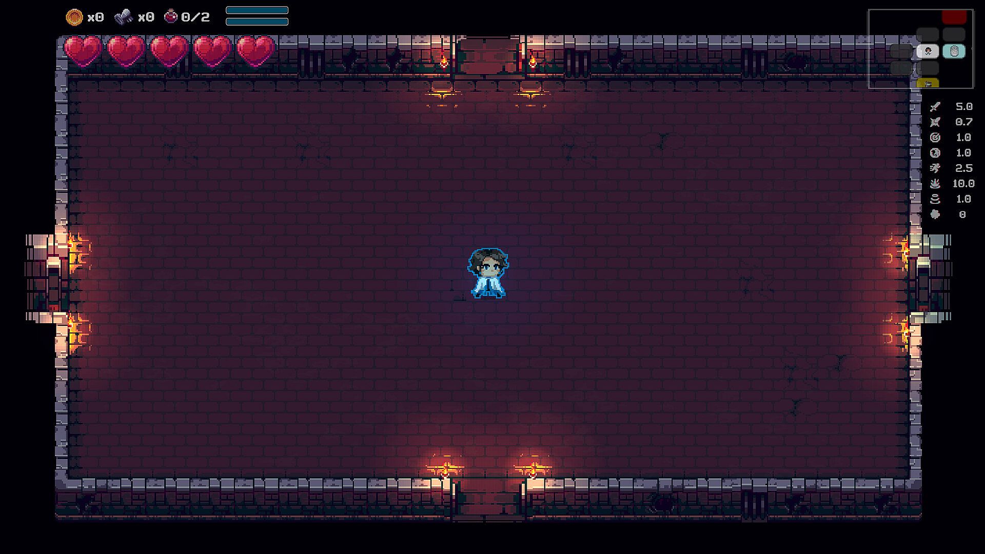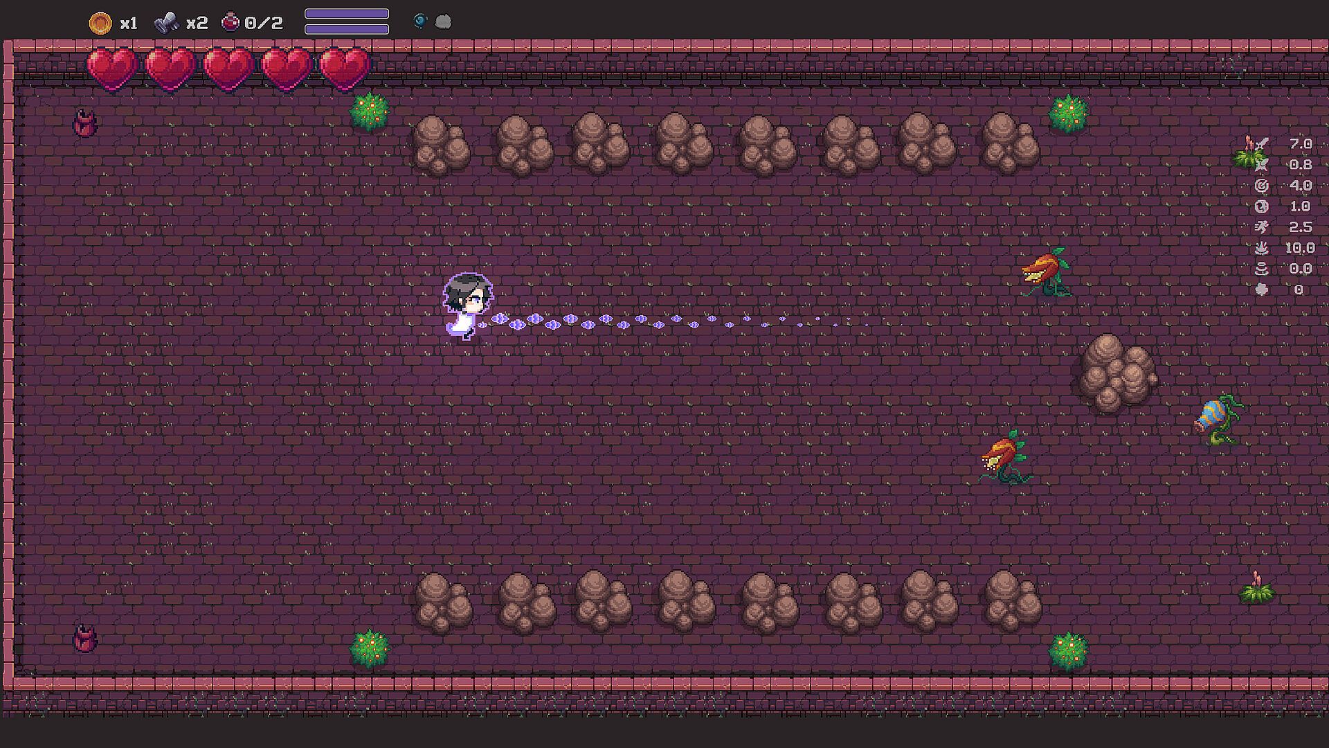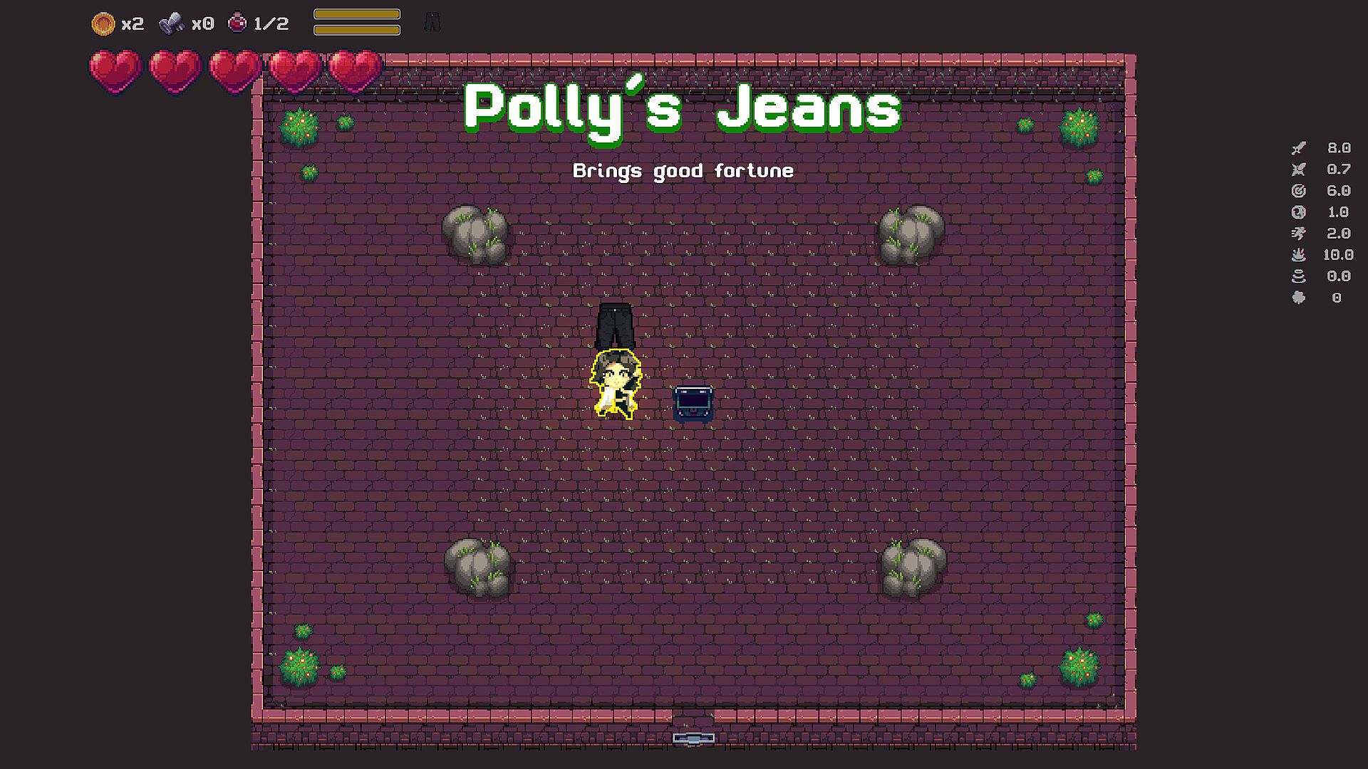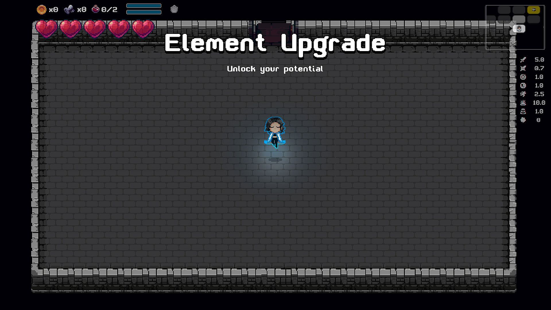 Throughout the many dungeons you can encounter various items that provide a range of benefits, from a simple stat boost item to items that modify your projectile attack in unique ways. Many of these items can have unique interactions with each element. A moon themed item can have unique effects when playing with a water-based element.