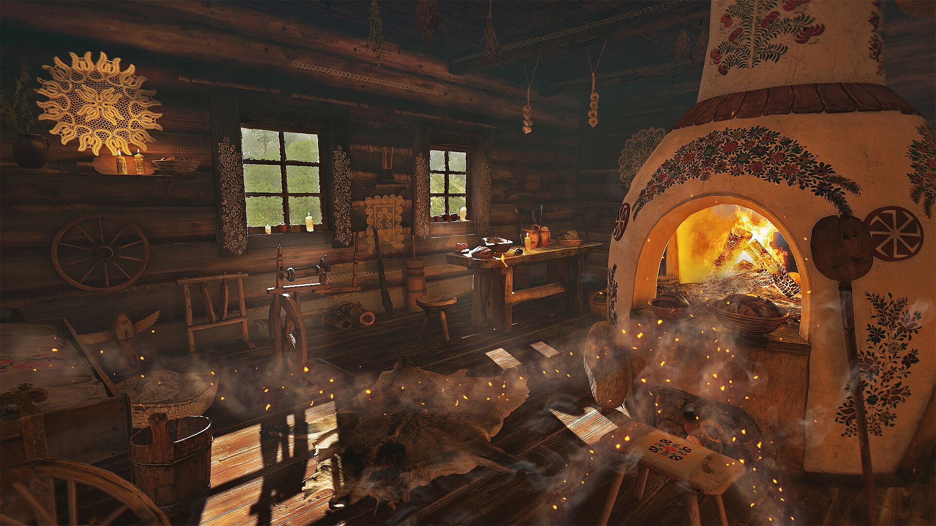 Feel the might of the fire of time. Influence the paths of heroes’ fates — restore the course of events to its rightful track and discover new fragments of an epic story. Travel across four seasons, separated from each other by many years. Witness the lives of the same heroes at different stages, during the greatest Slavic festivals. Time and hearths are intertwined. Your actions affect the world around you — make changes and carefully observe the consequences.