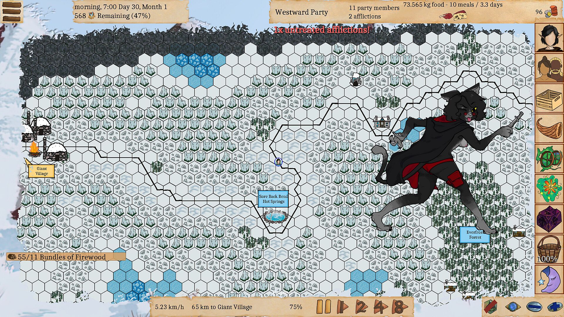 - 90+ afflictions, slow transformations that stay with party members, transforming them a little more bit by bit