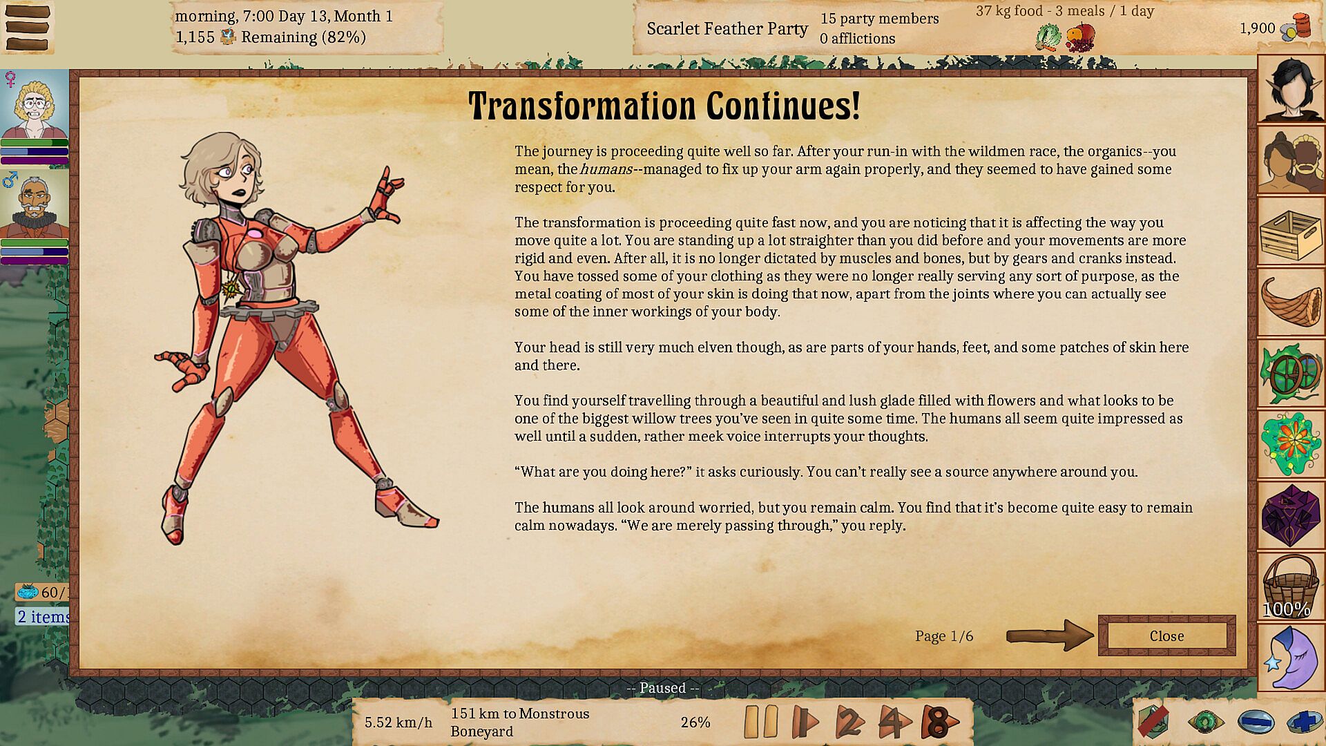 - 230+ choose-your-own-adventure-style encounters where party members can be transformed into elves, wildmen, animals, monsters, statues, clothes, fairies, dinosaurs, and much, much more