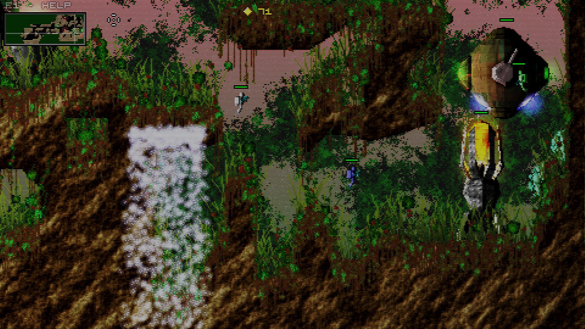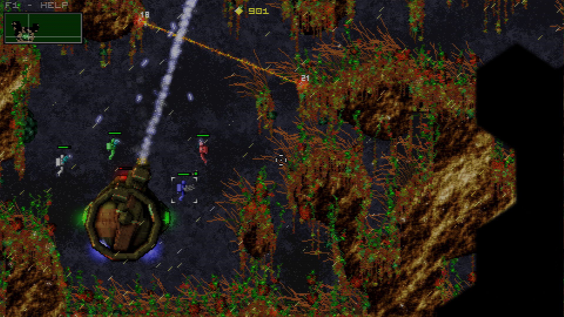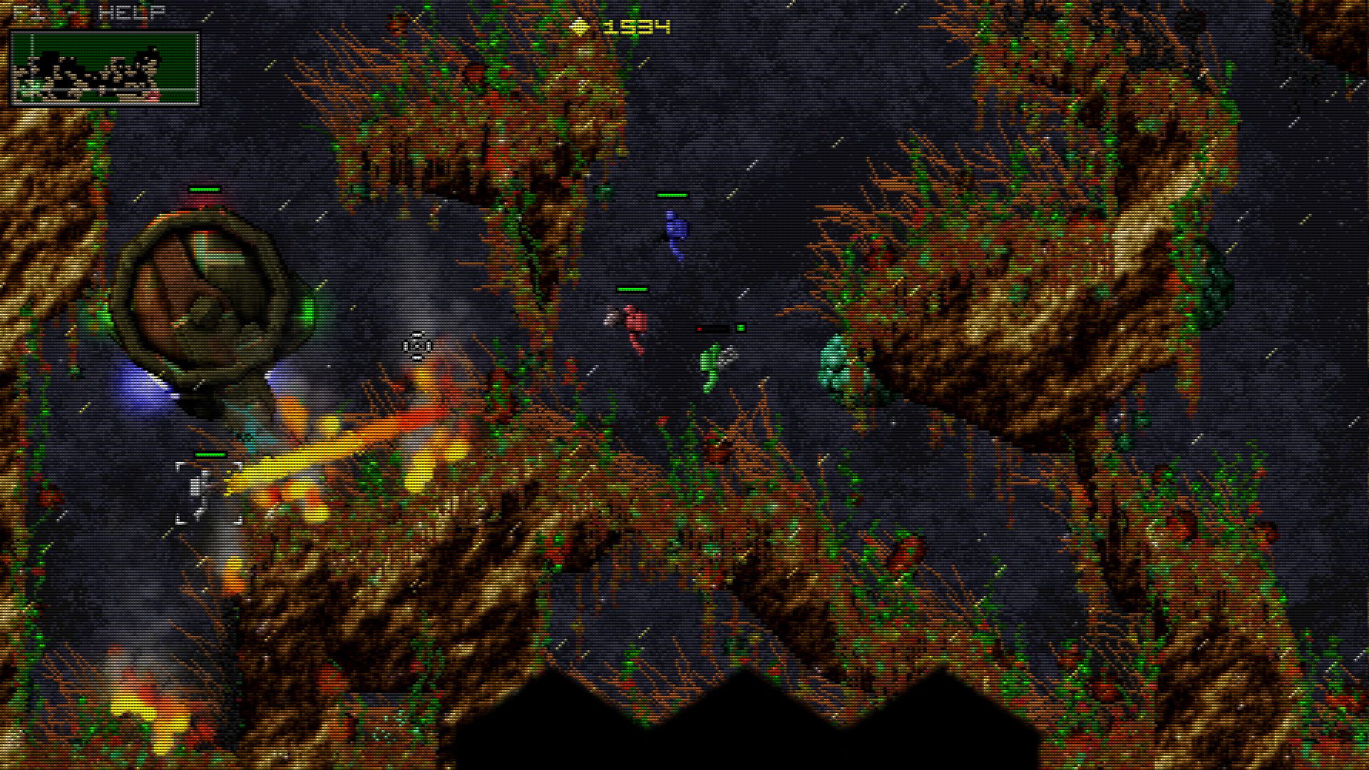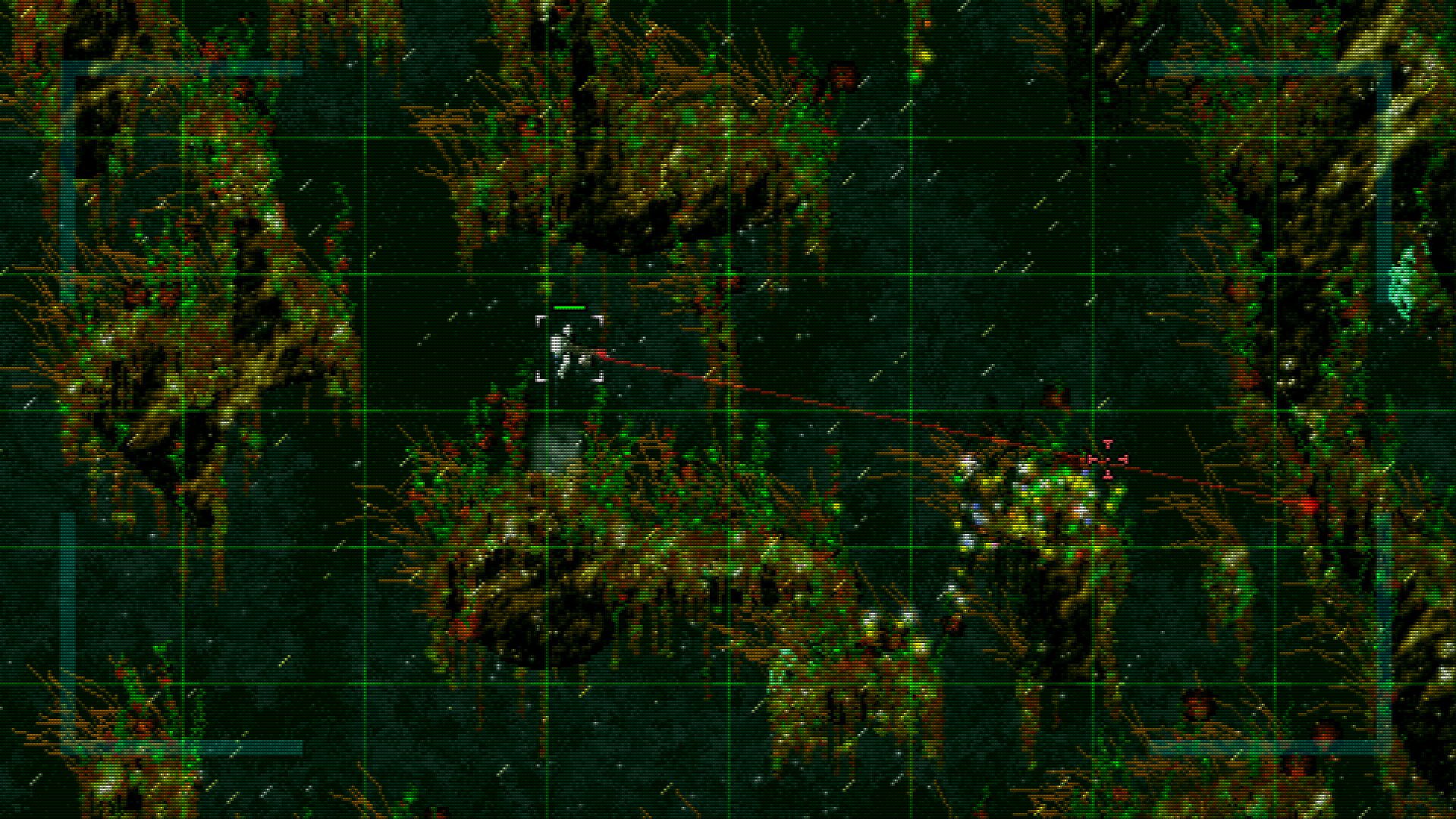 Targets can be attacked with your team and your ship. Your team can hide behind the ship for some protection. However, while strong, it won't last forever. Destroying enemies and special objects will leave resources behind which can be used to build new weapons and upgrades.