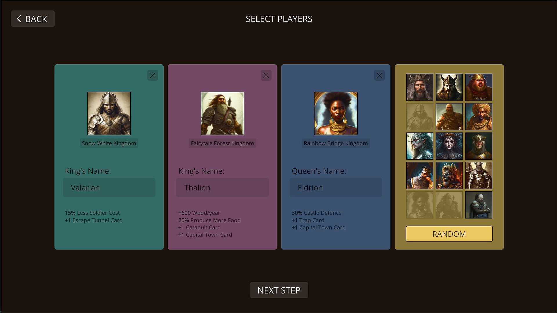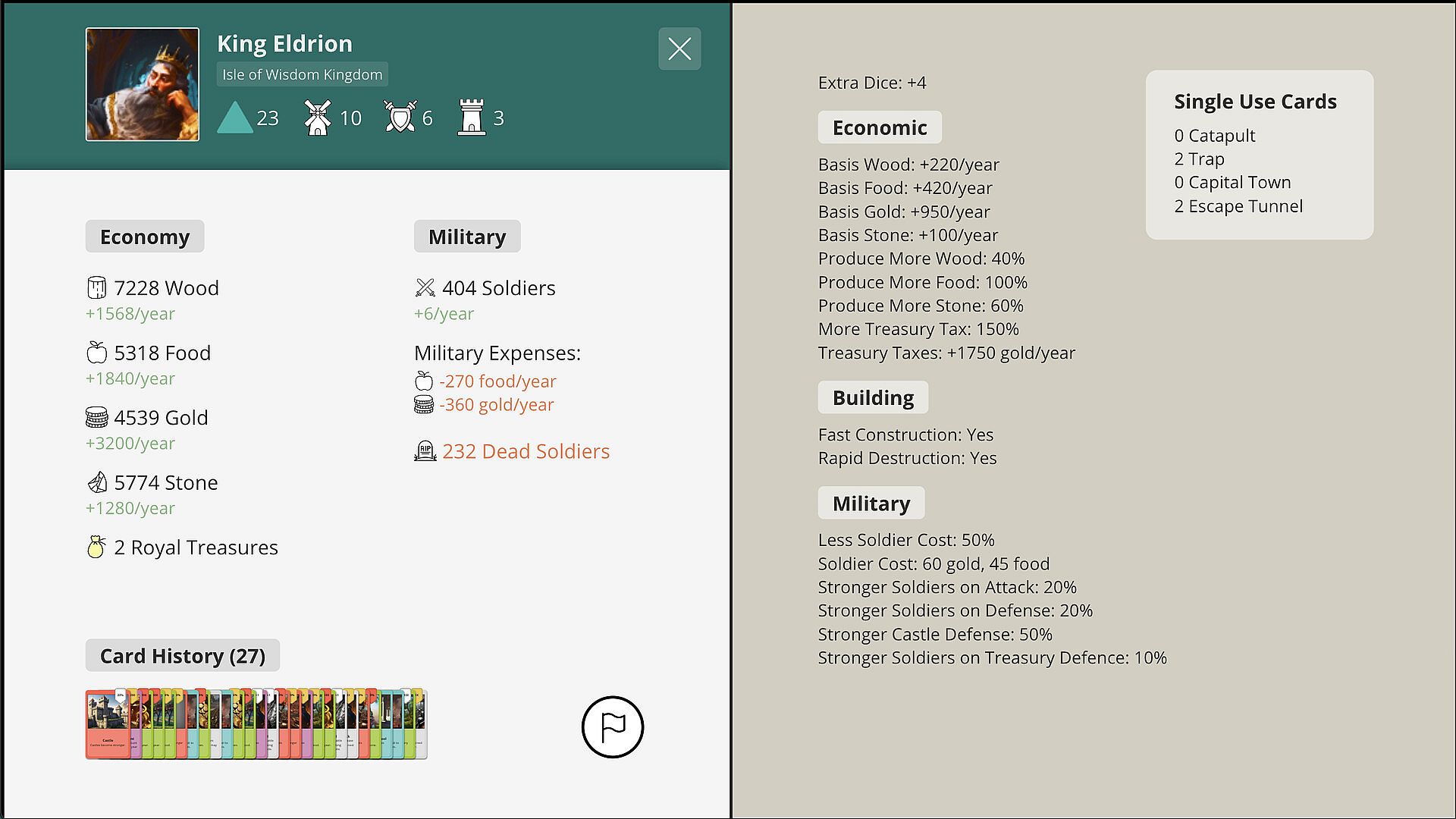 - Card-Drafting Mechanism: Strengthen your kingdom's economy, army, and defense by collecting powerful cards.