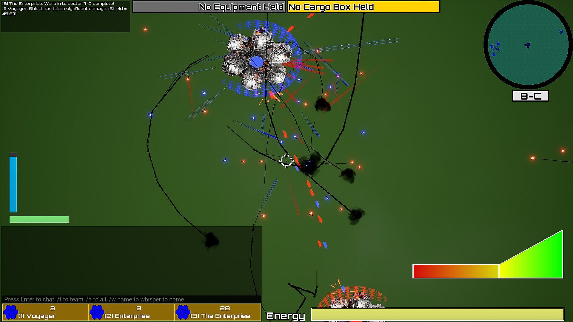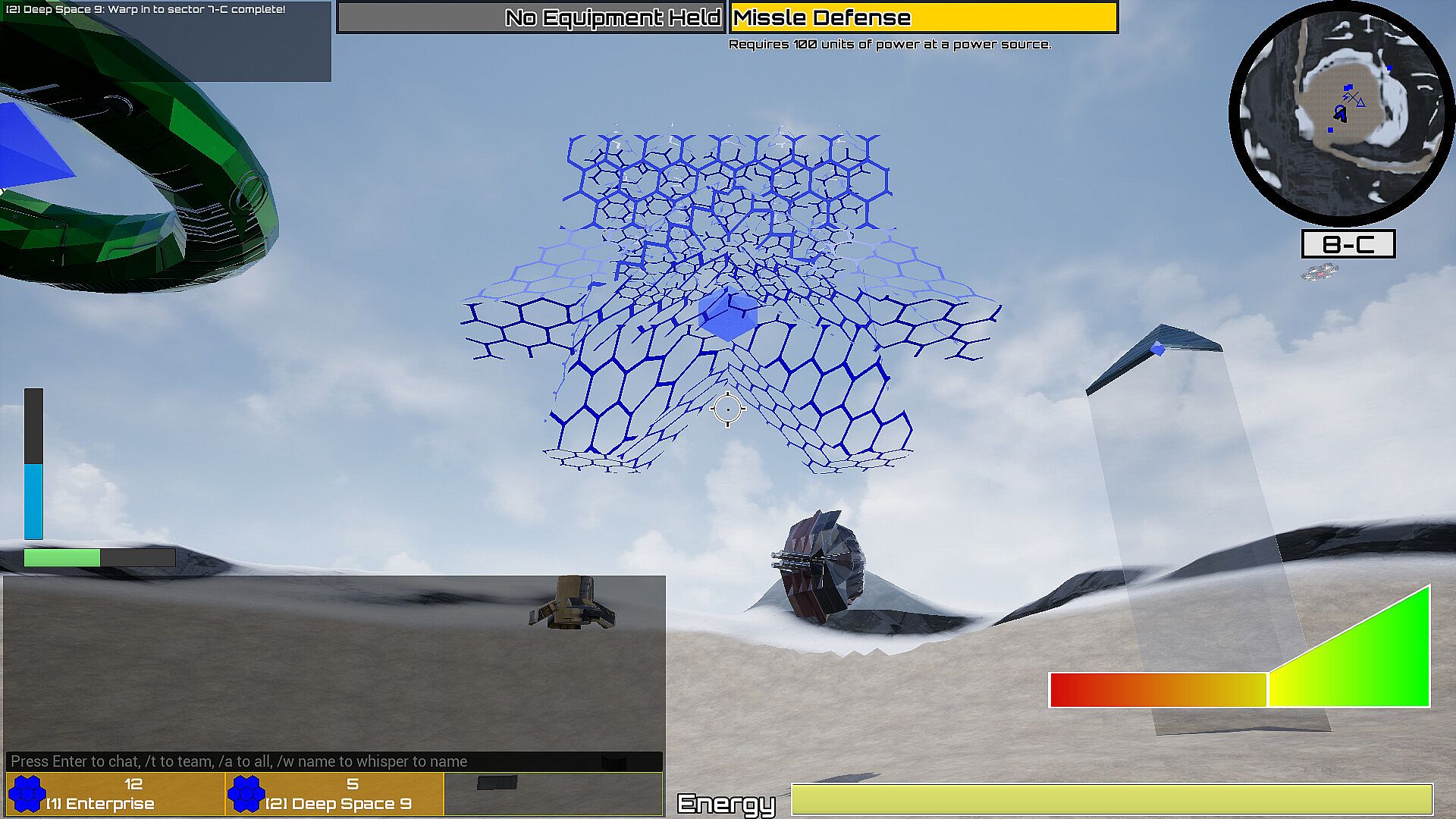 It's not enough to simply have a great idea. You also have to be able to explain it to others and convince them of its merits. While this is true in general, it's emphasized in The Final Front. The actions of the powerful StarForts stationed in orbit above you are determined based on democracy. The members of your team can choose to vote on any action they feel would be best and that action will be carried out after a few minutes. Whether that action is dropping the cargo boxes containing structures needed for an important base, scrambling drone fighters to harry the other team's StarForts, or strategically nuking the other team from orbit.