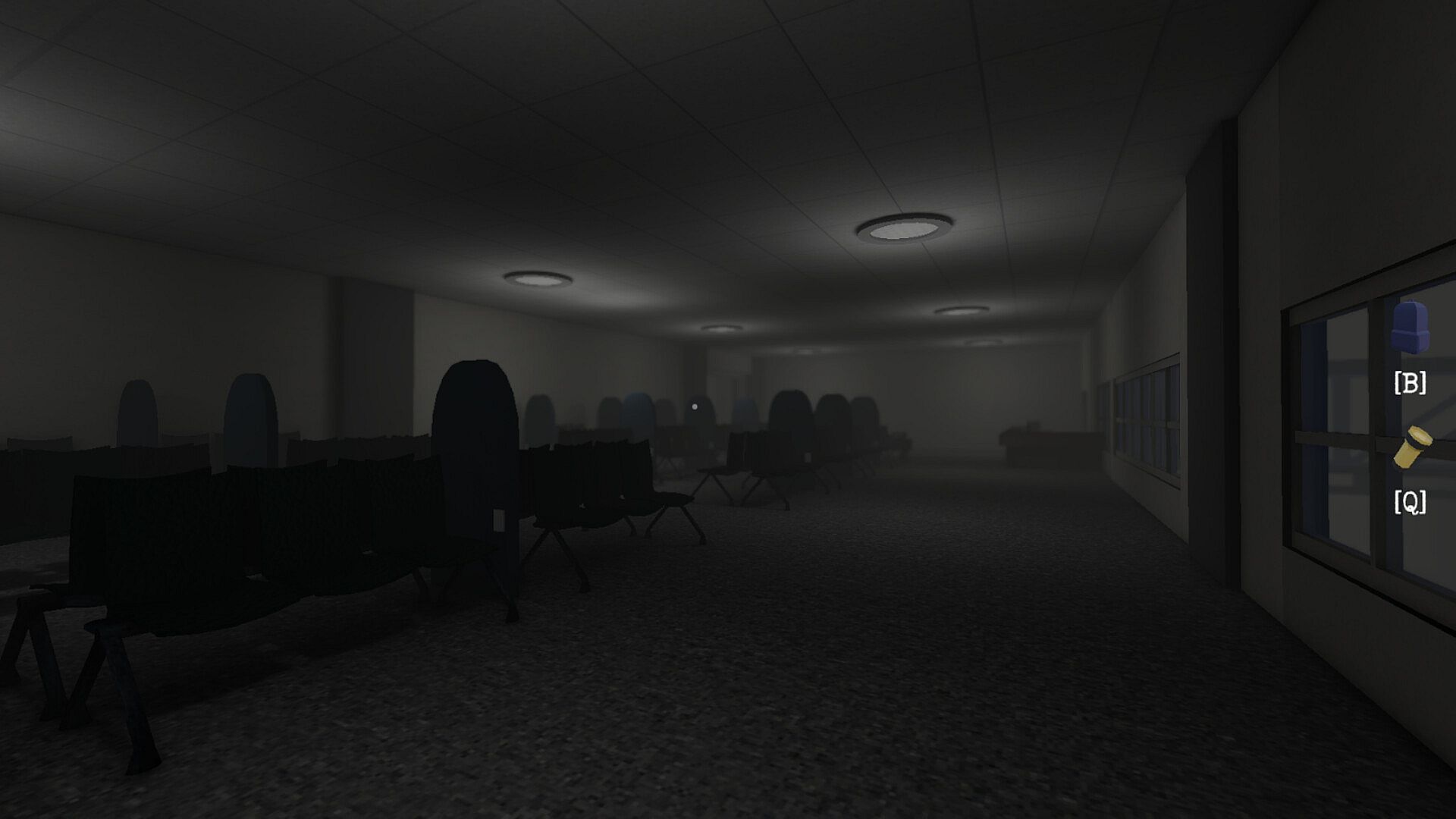 • Eerie atmospheric yet visible setting in a near-empty airport map