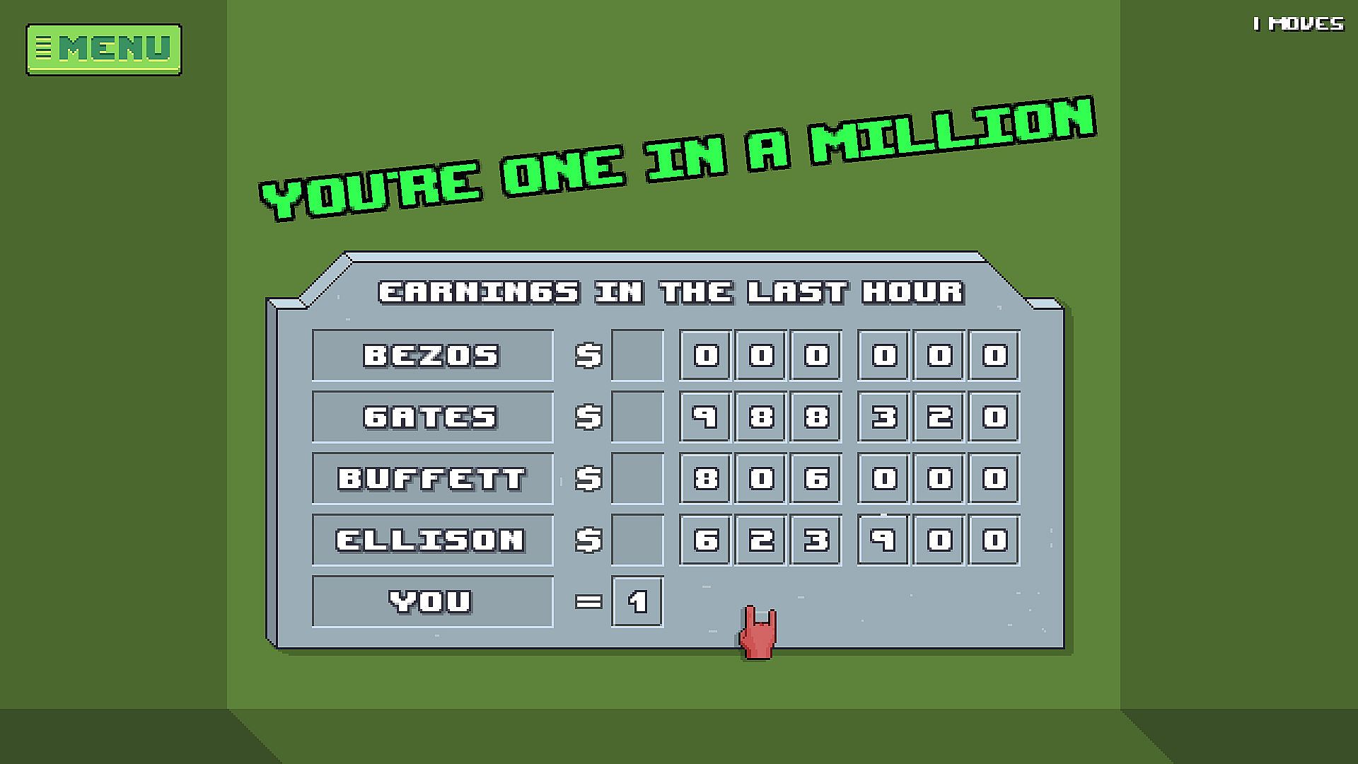 The Game is ON is a puzzle game where you have to move things and click around until the situation on the screen matches some well known phrase or idiom from the English language. By solving the puzzles, you get jigsaw pieces. Collect enough pieces to unlock extra levels. You can also get jigsaw pieces by solving the puzzles in least possible moves and by finding pieces hidden in levels. Some are hidden behind other objects or produced after you manipulate buttons or other things on the screen.